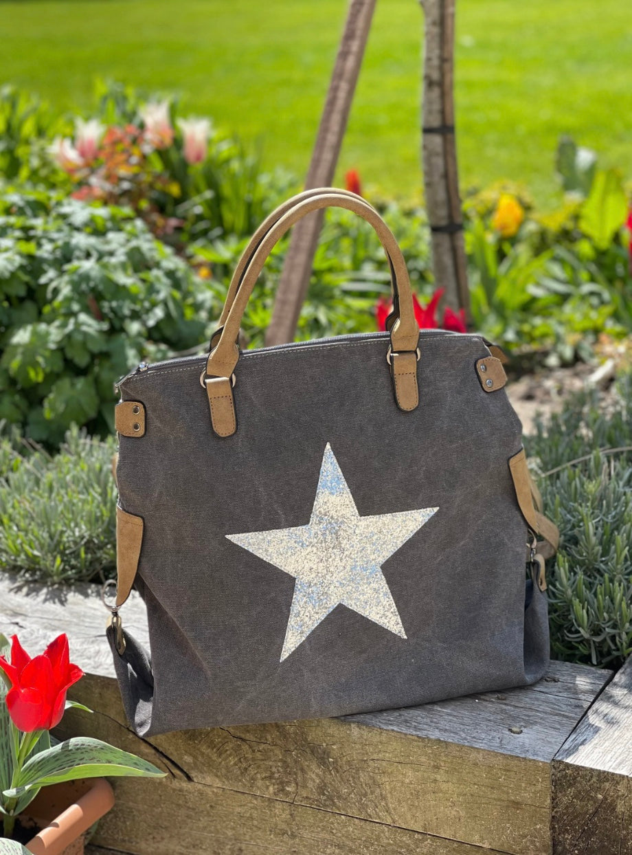 Stunning Dark Grey canvas tote bag featuring a glam sparkly star. Oversized bag so great for days out, beach & shopping