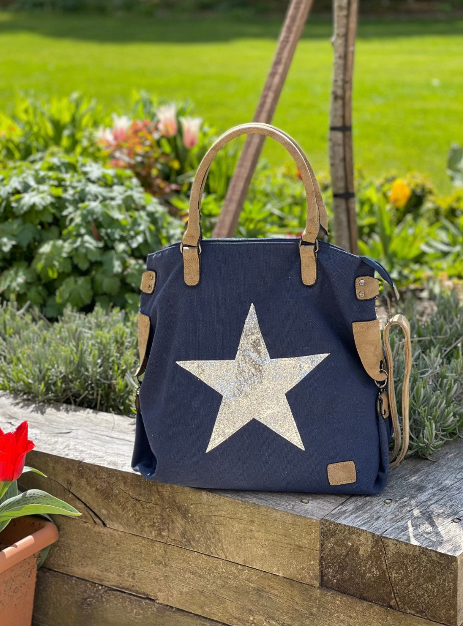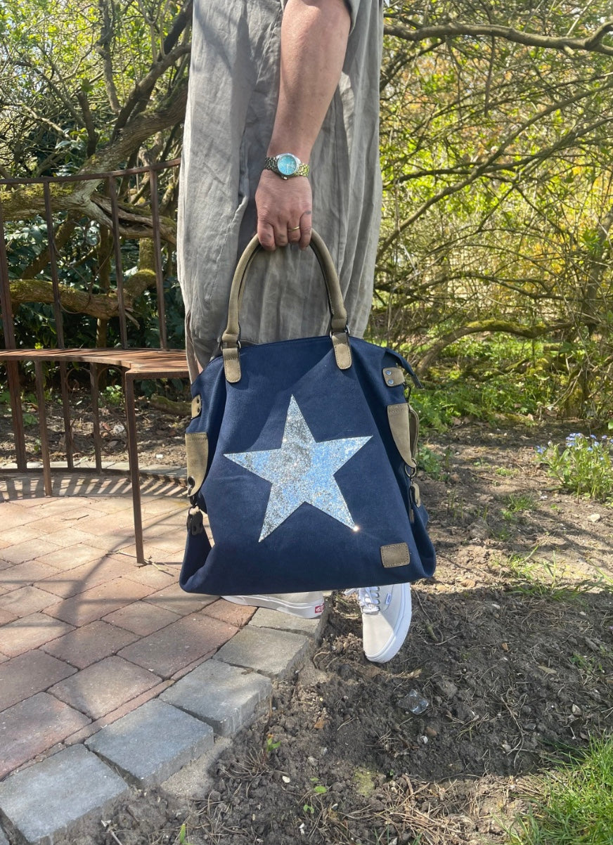 Stunning Navy canvas tote bag featuring a glam sparkly star. Oversized bag so great for days out, beach & shopping