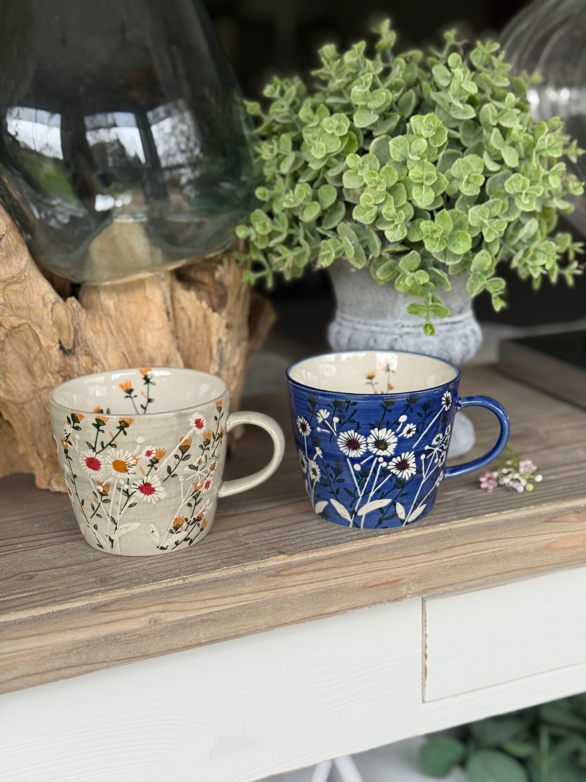 Ceramic Daisy Mugs 12.5cm - 2 Colour Options Available