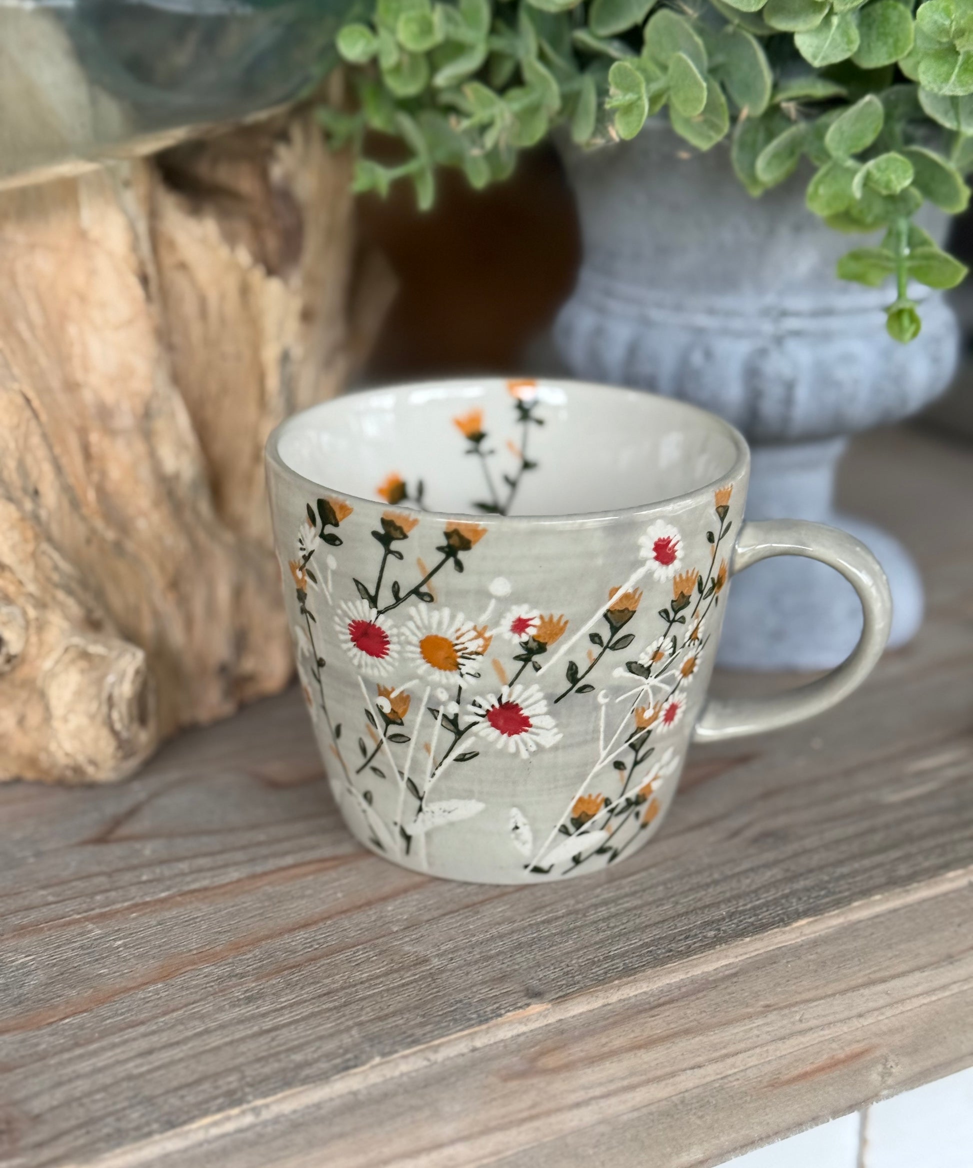Beautiful country themed ceramic Daisy mugs by Gisela Graham London. Featuring Daisy Flower designs.
