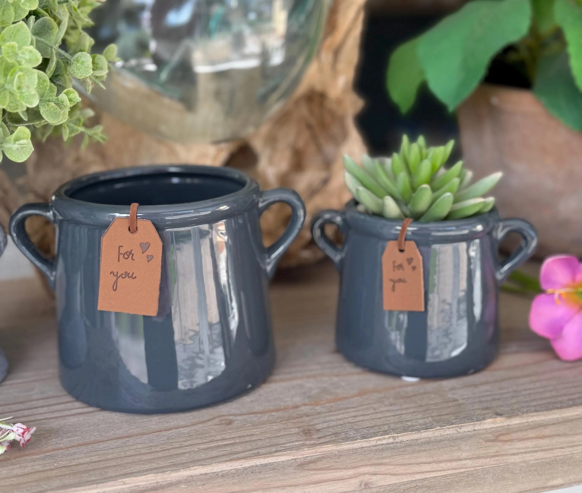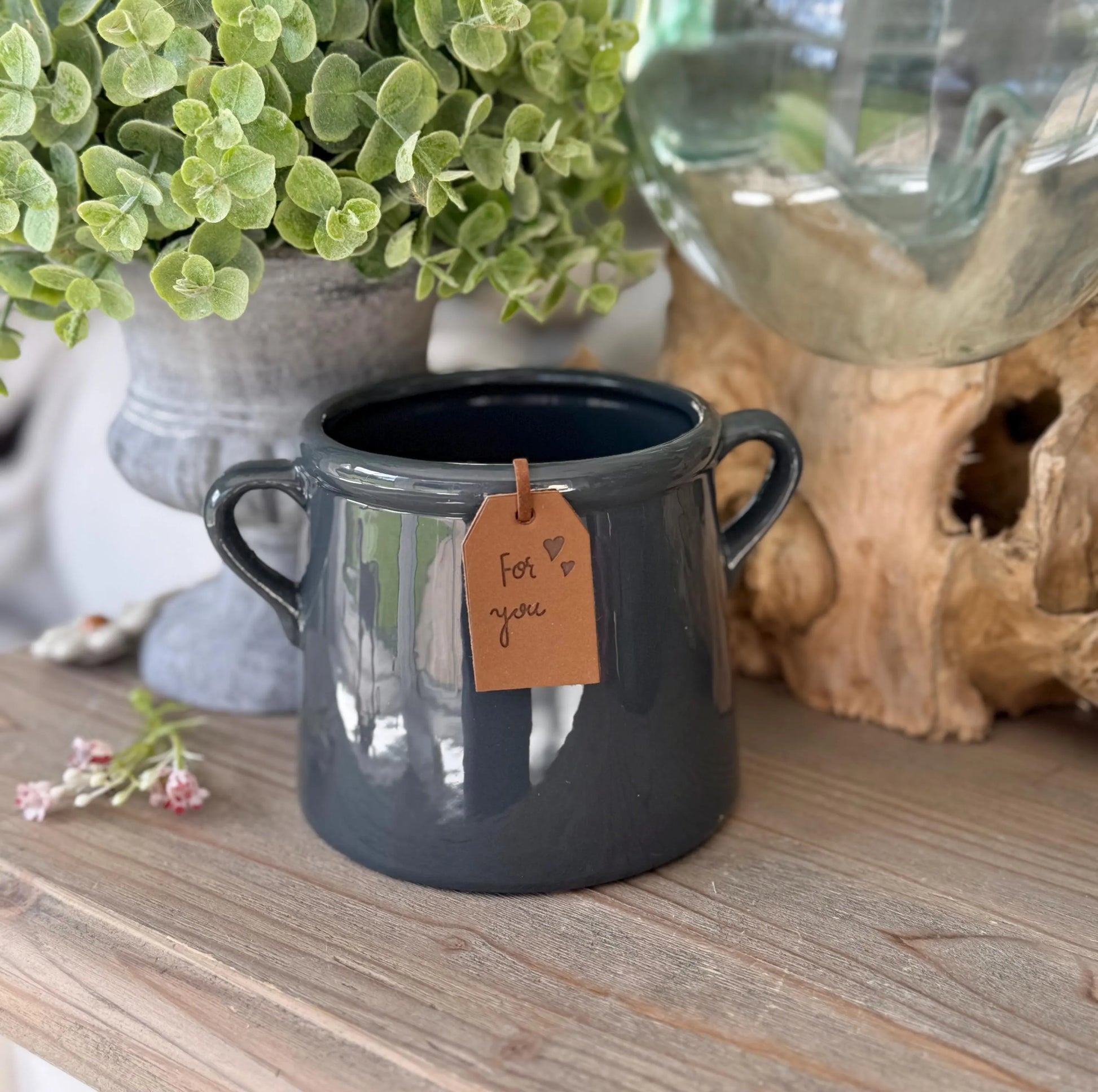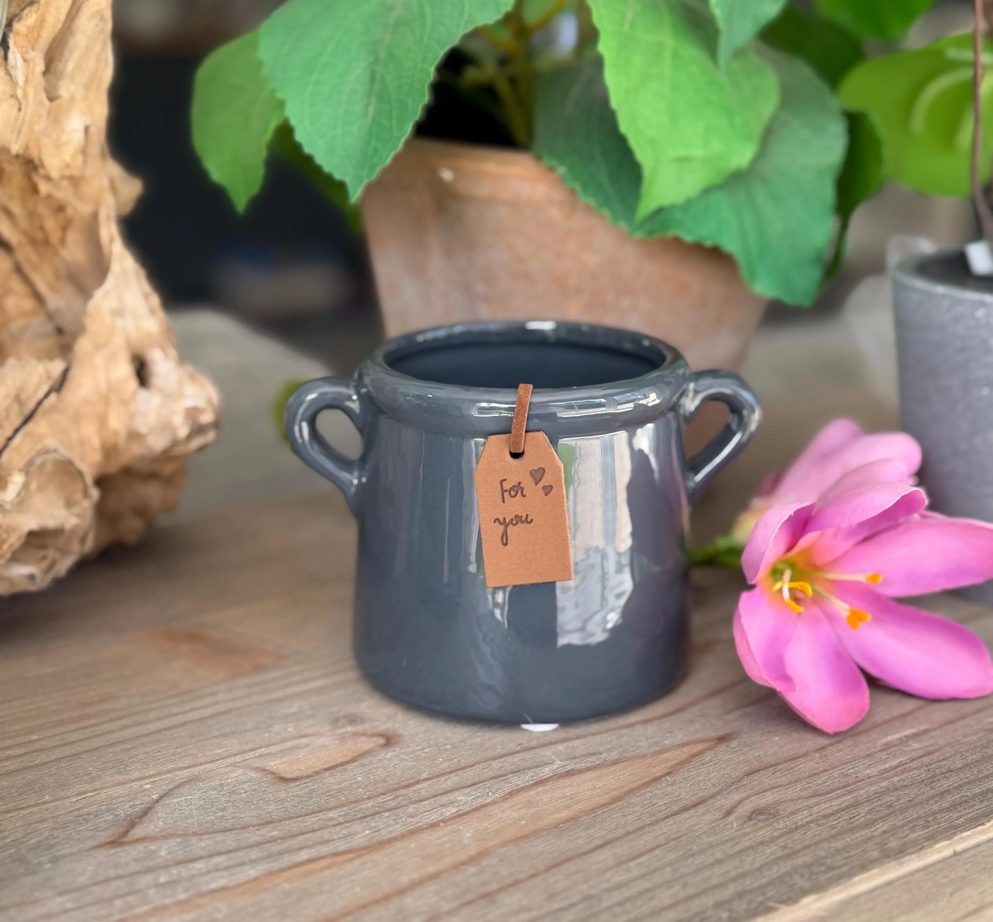 Dark Grey Ceramic Pot with 'For You' Tag - 2 Sizes Available