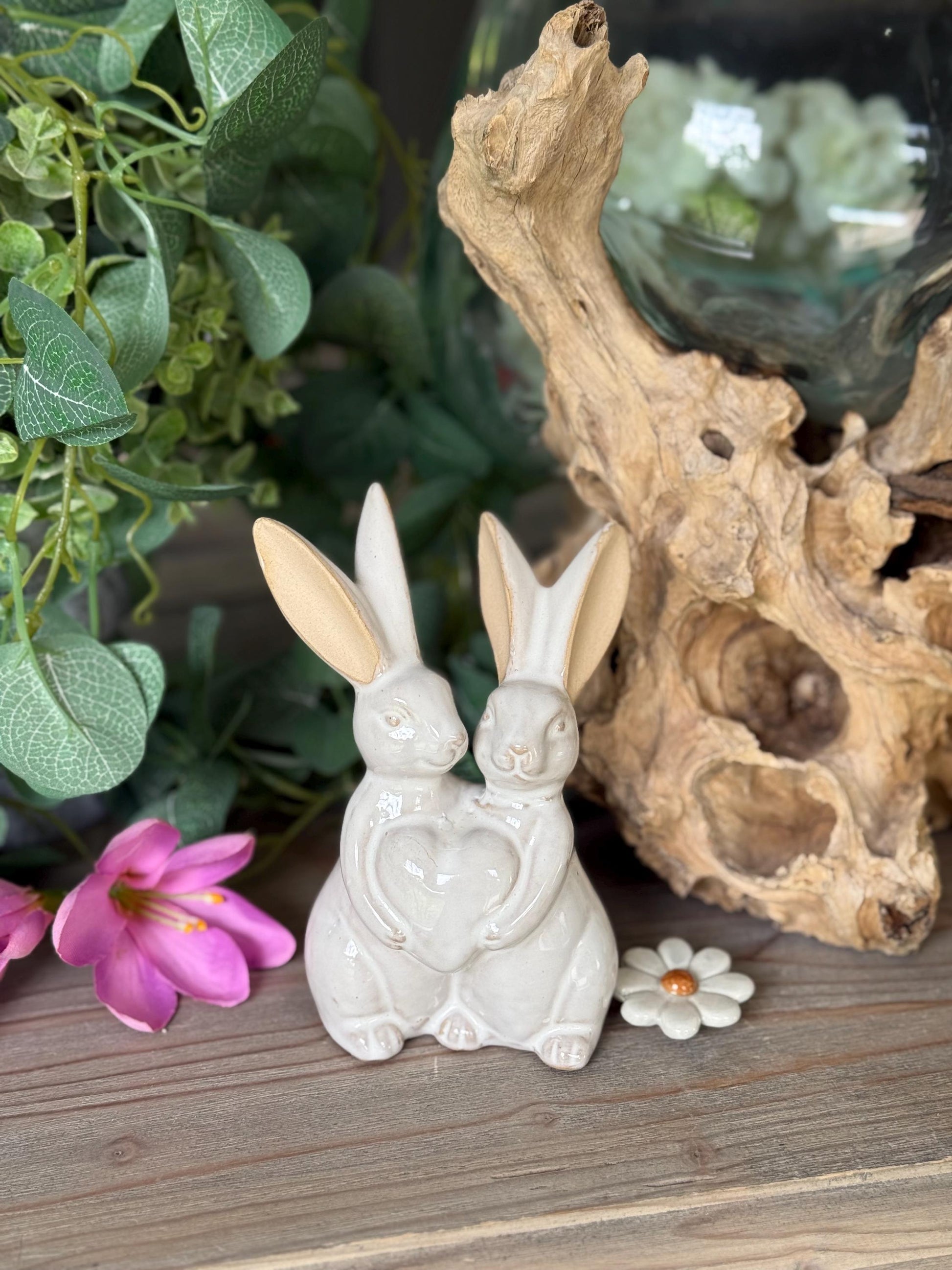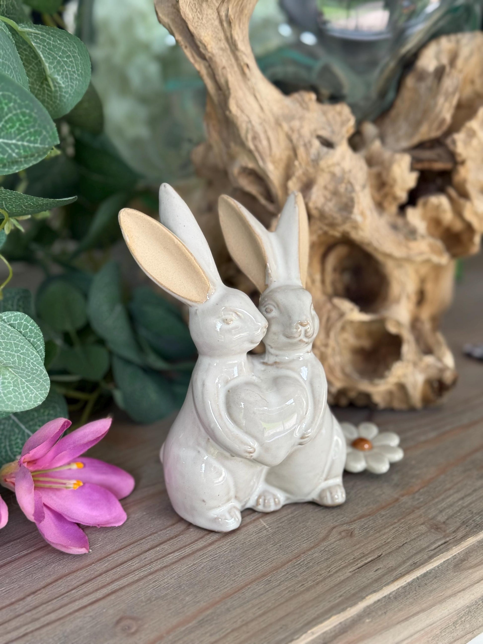Glazed Ceramic Hugging Bunnies.