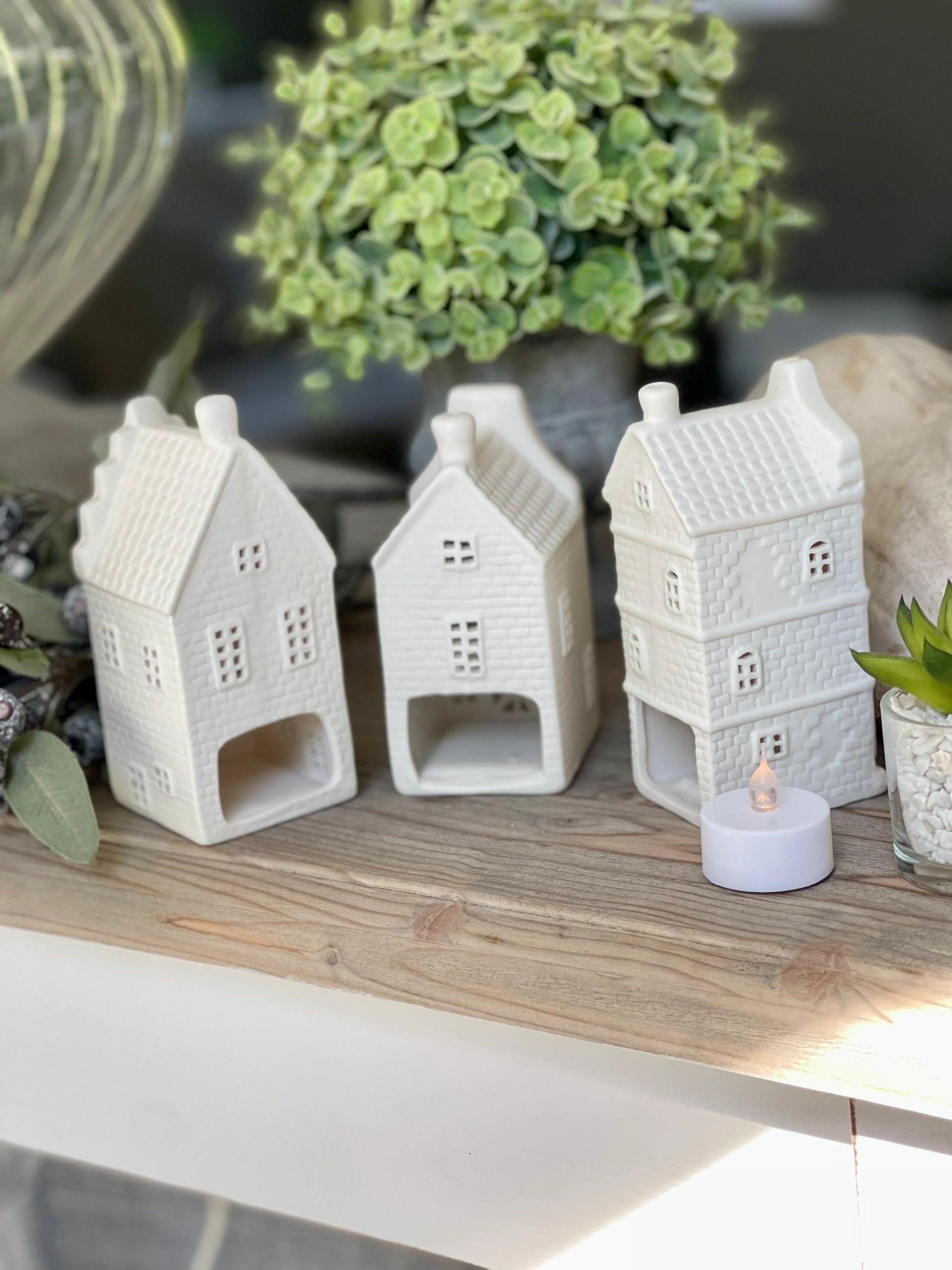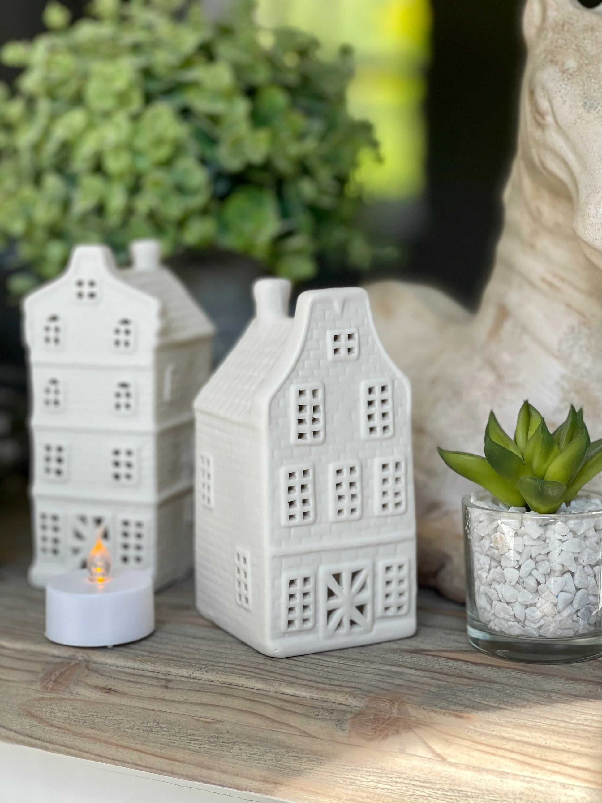 These porcelain Dutch Canal tea light houses are available in 3 separate house designs and gorgeously resemble the well known canal houses found in Holland especially Amsterdam.