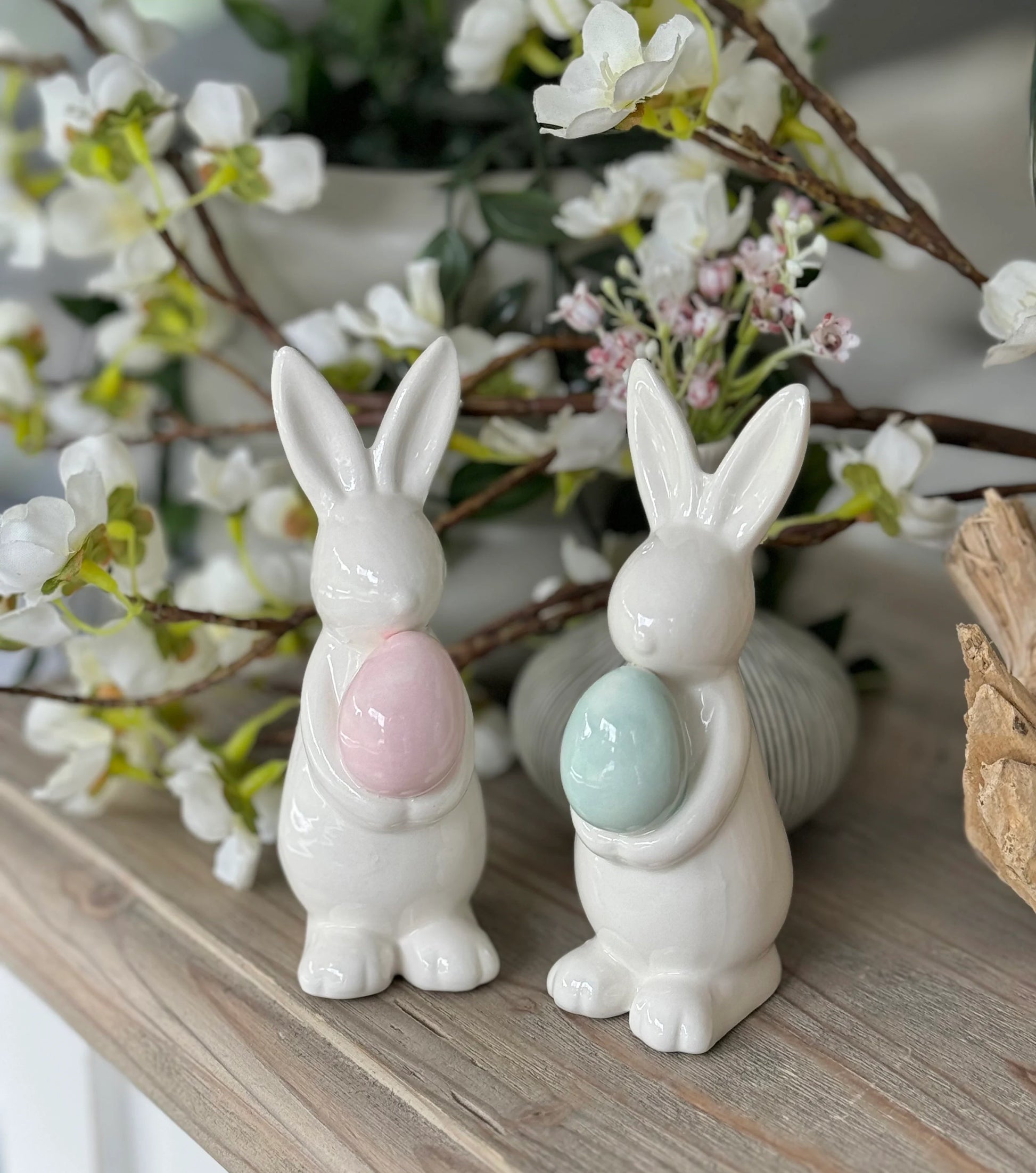 Very sweet bunnies and look absolutely perfect in any room this Easter. There is 2 choice options, one holding a Pink Egg and the other holding a Blue Egg. Style on its own or as a set of 2
