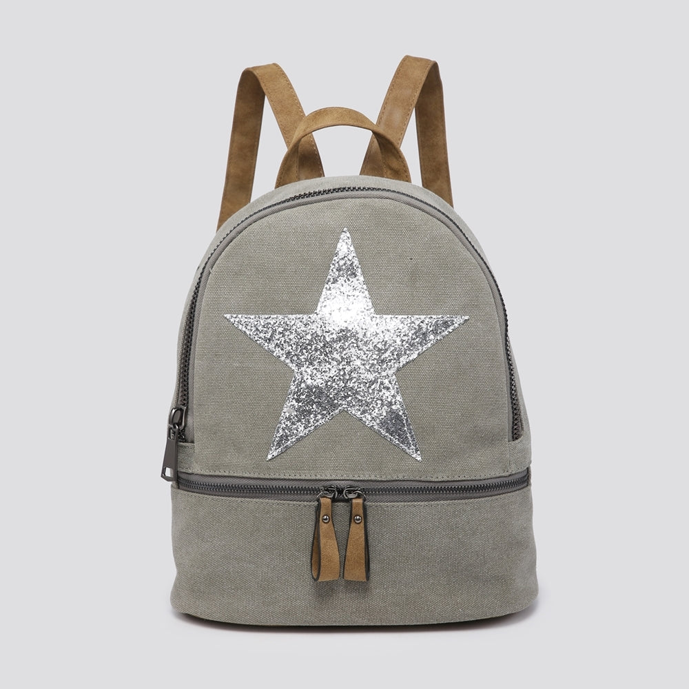 Pale Grey Canvas Rucksack/Backpack with Silver Star