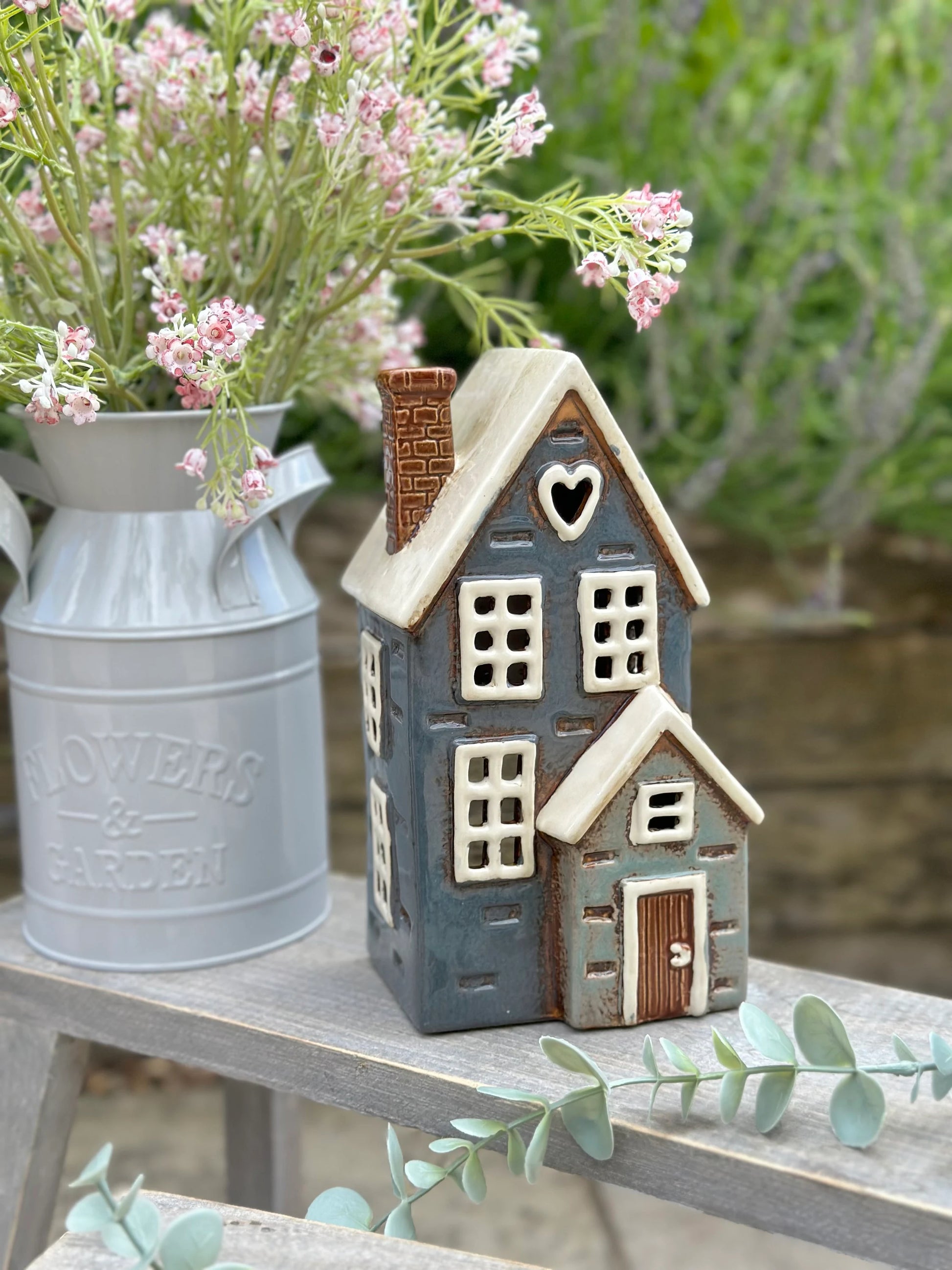 Navy/Duck Egg Traditional Village Porch House Candle Holder