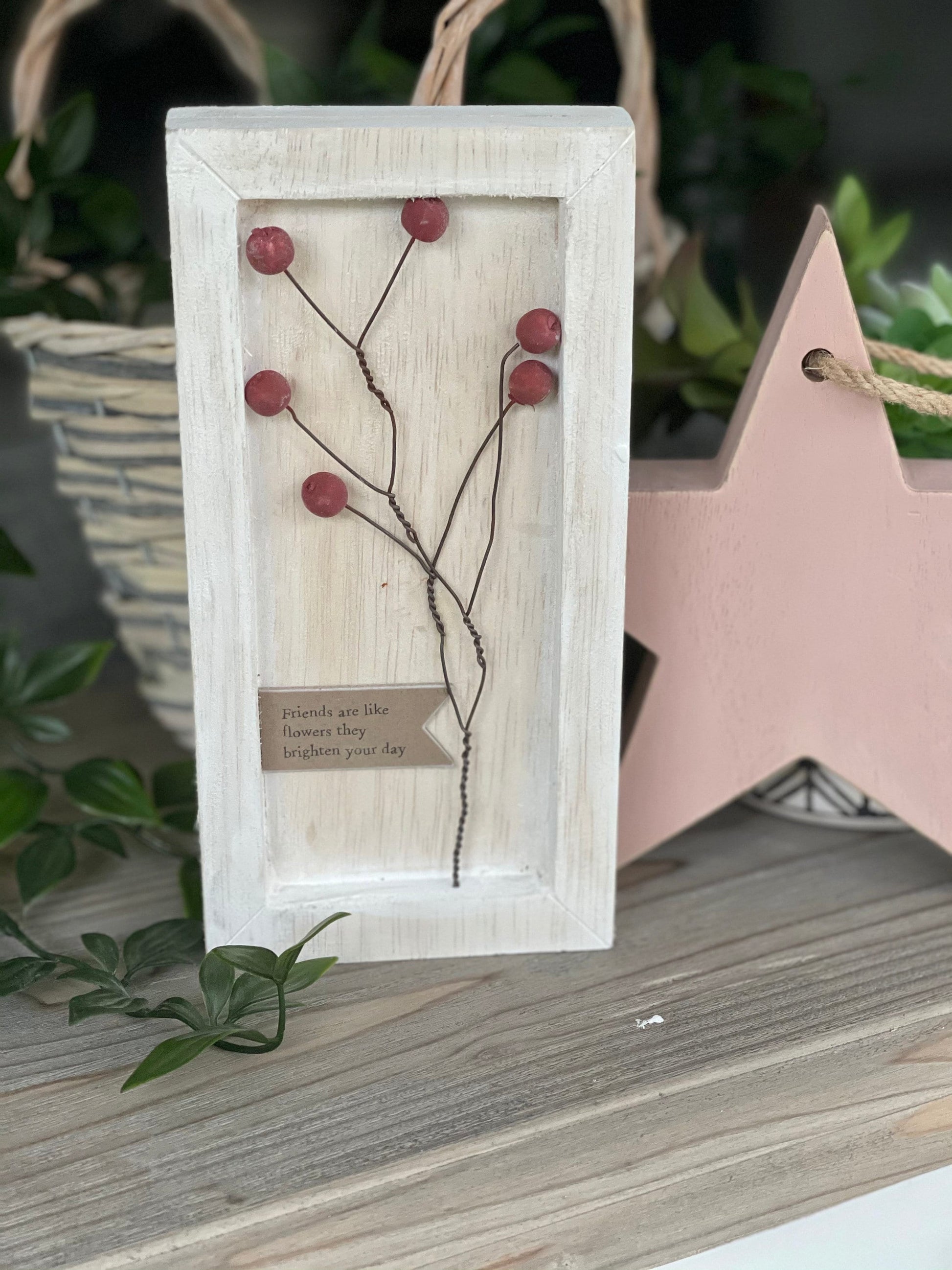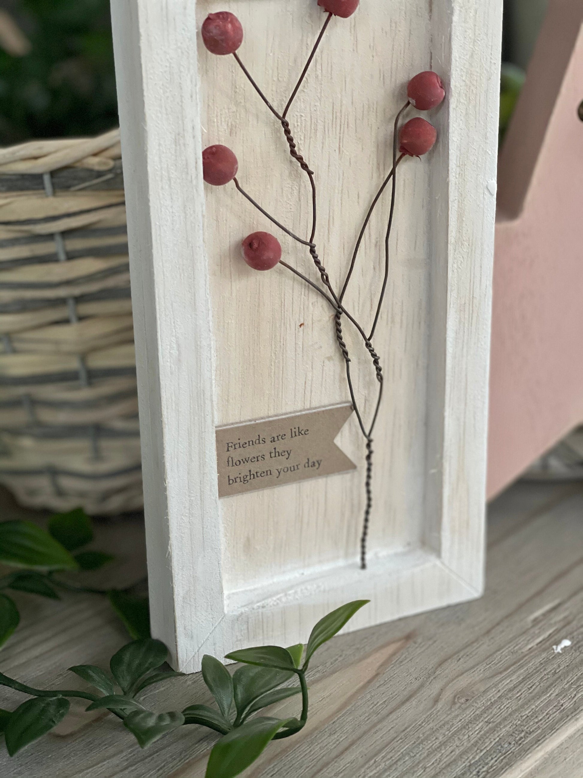 Features an artistic design mixed with an inspiring quote. ‘Friends are like flowers they brighten your day’