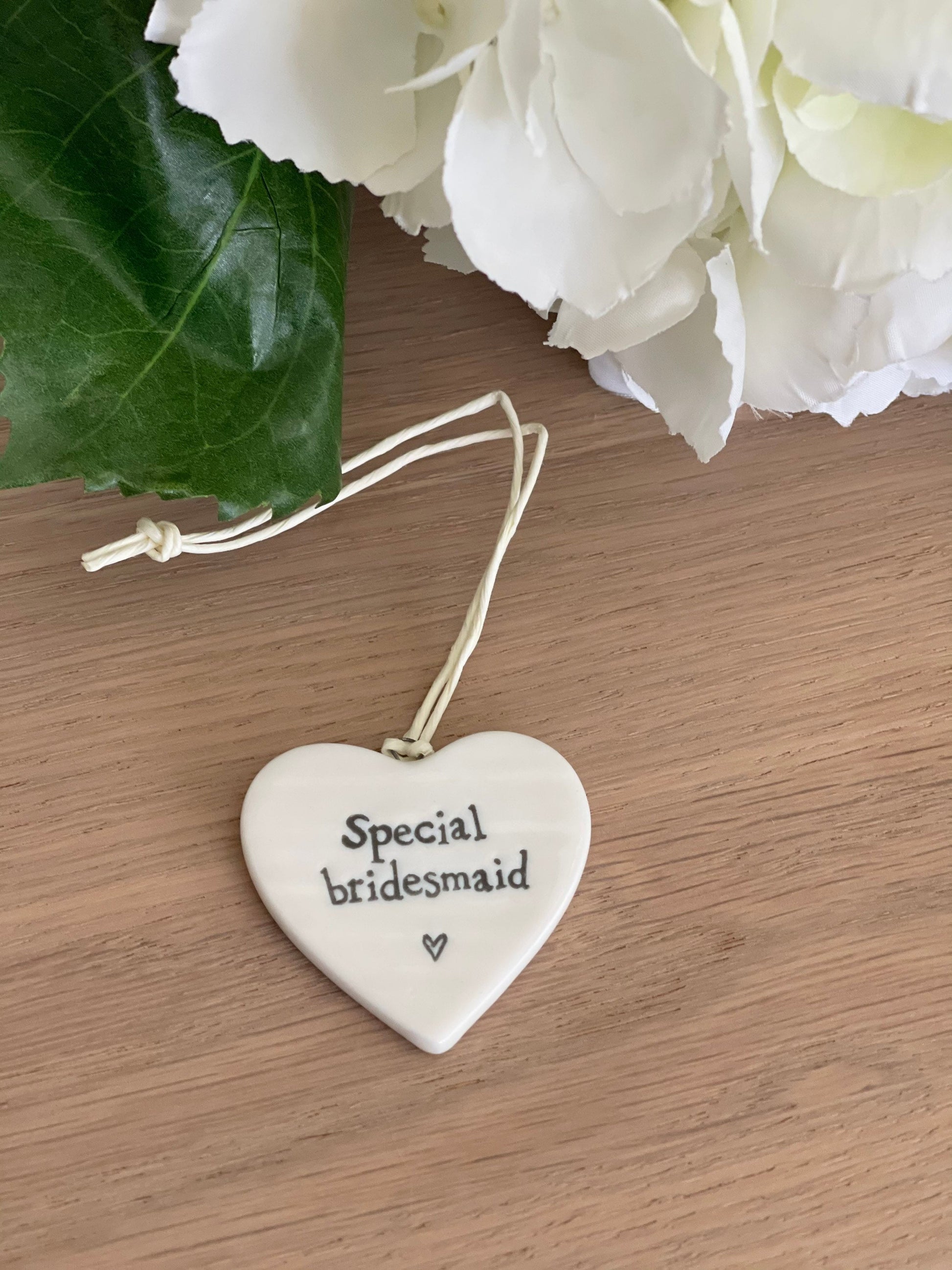 East Of India ‘Special Bridesmaid’ Porcelain Heart