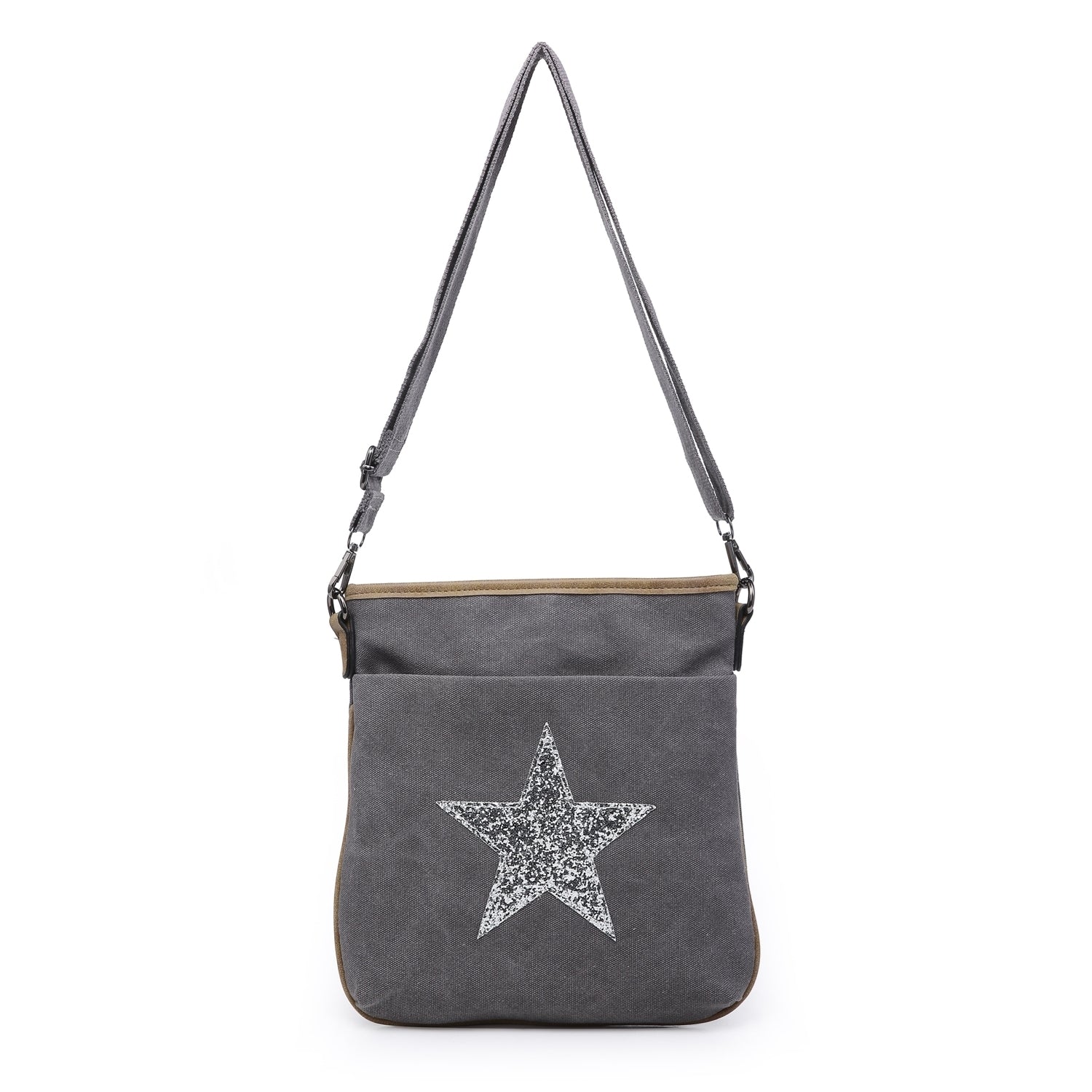 Grey Canvas Star Cross Body Bag