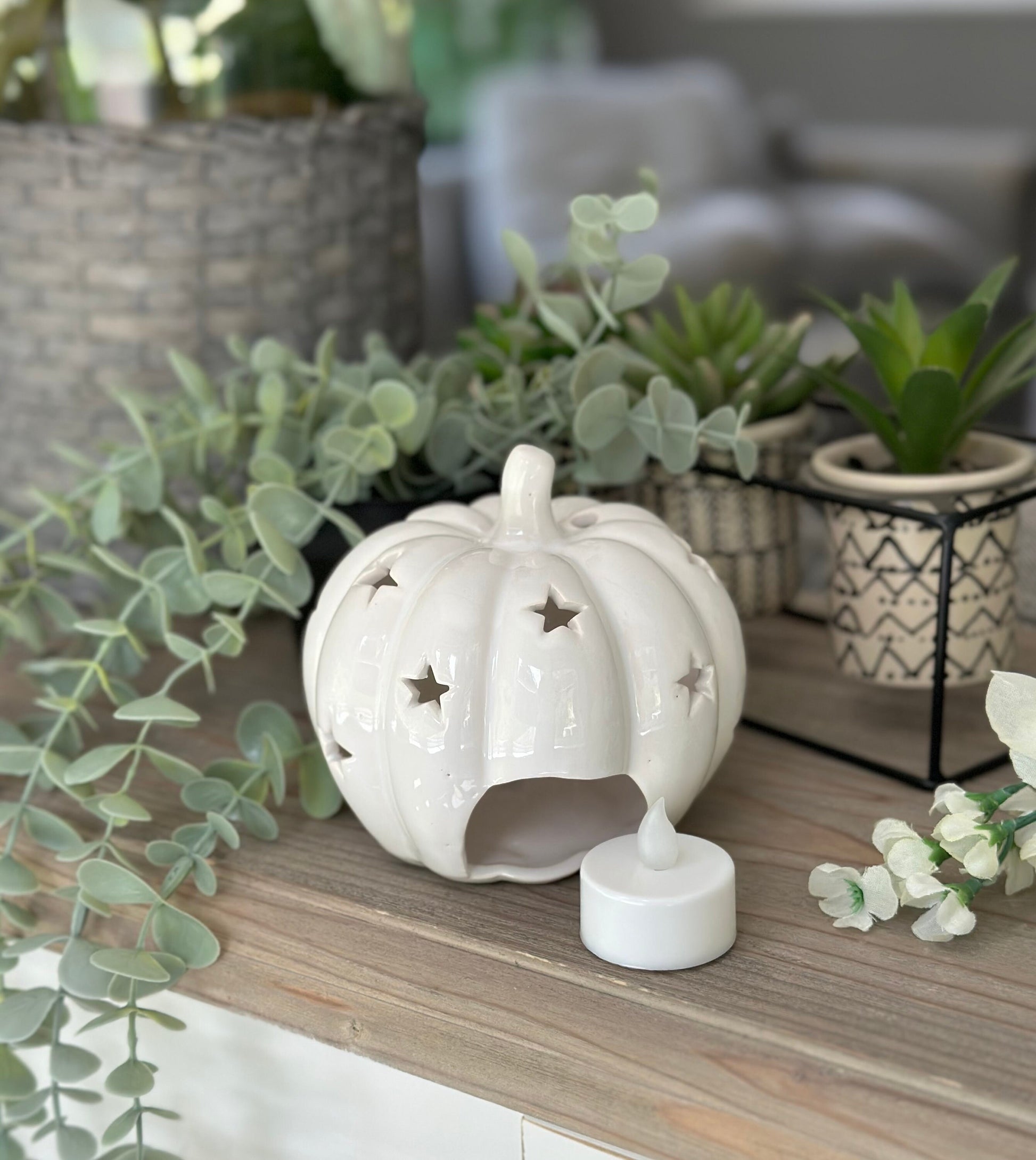 LED White Ceramic Pumpkins - Choice of 2 Sizes