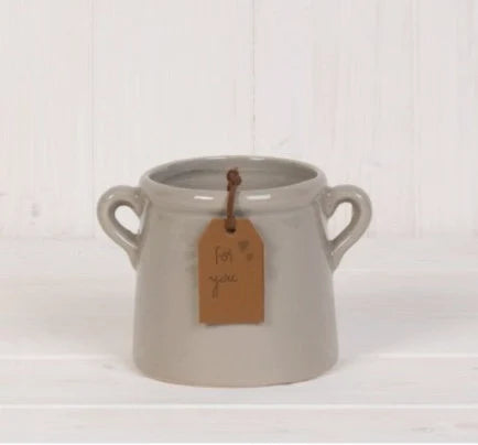 A beautiful and stylish ceramic pot in Grey. Complete with a PU leather tan coloured tag, stamped with a 'for you' slogan.