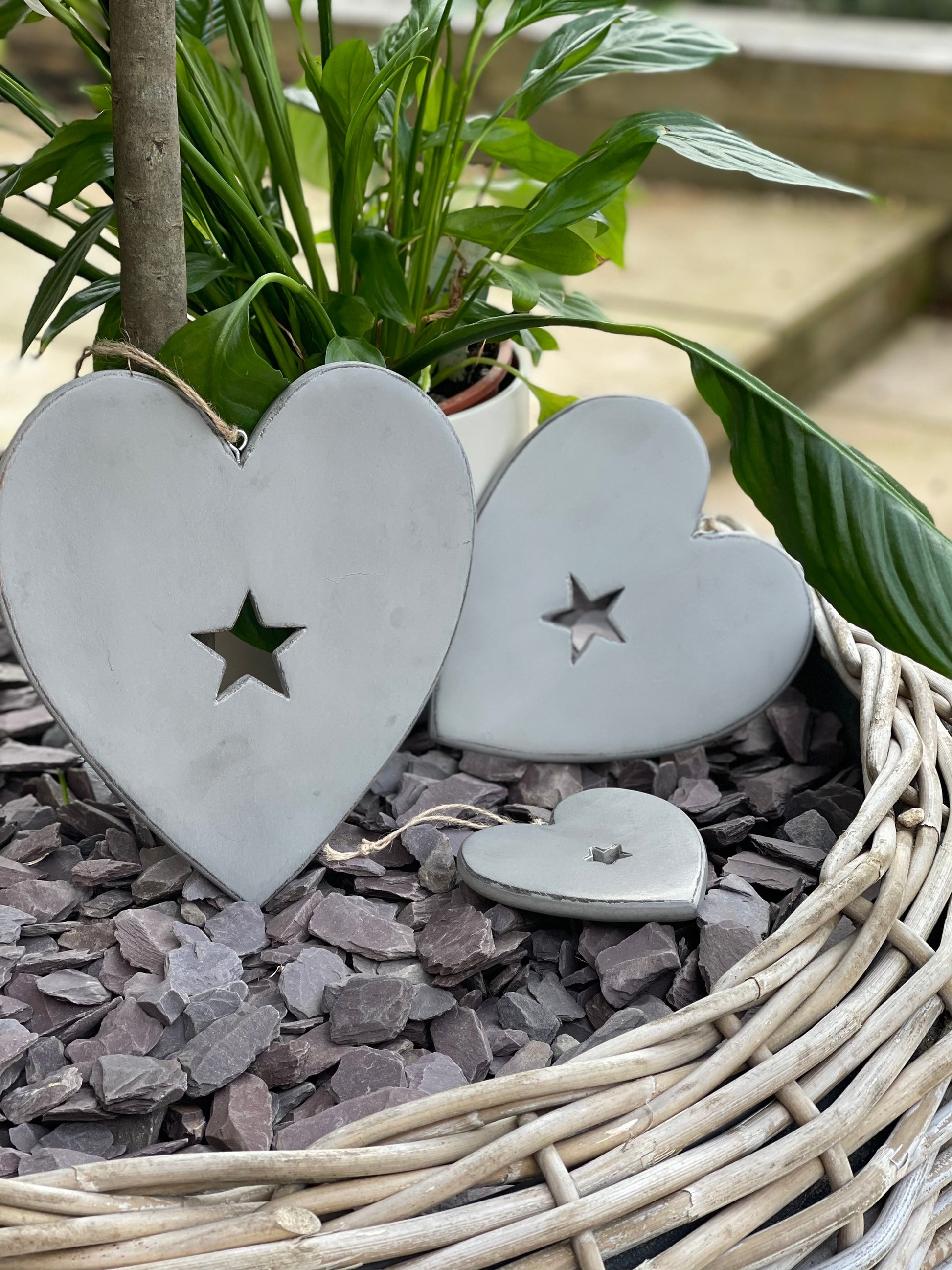 Grey Hearts With Star Cut Out Detail - Set of 3