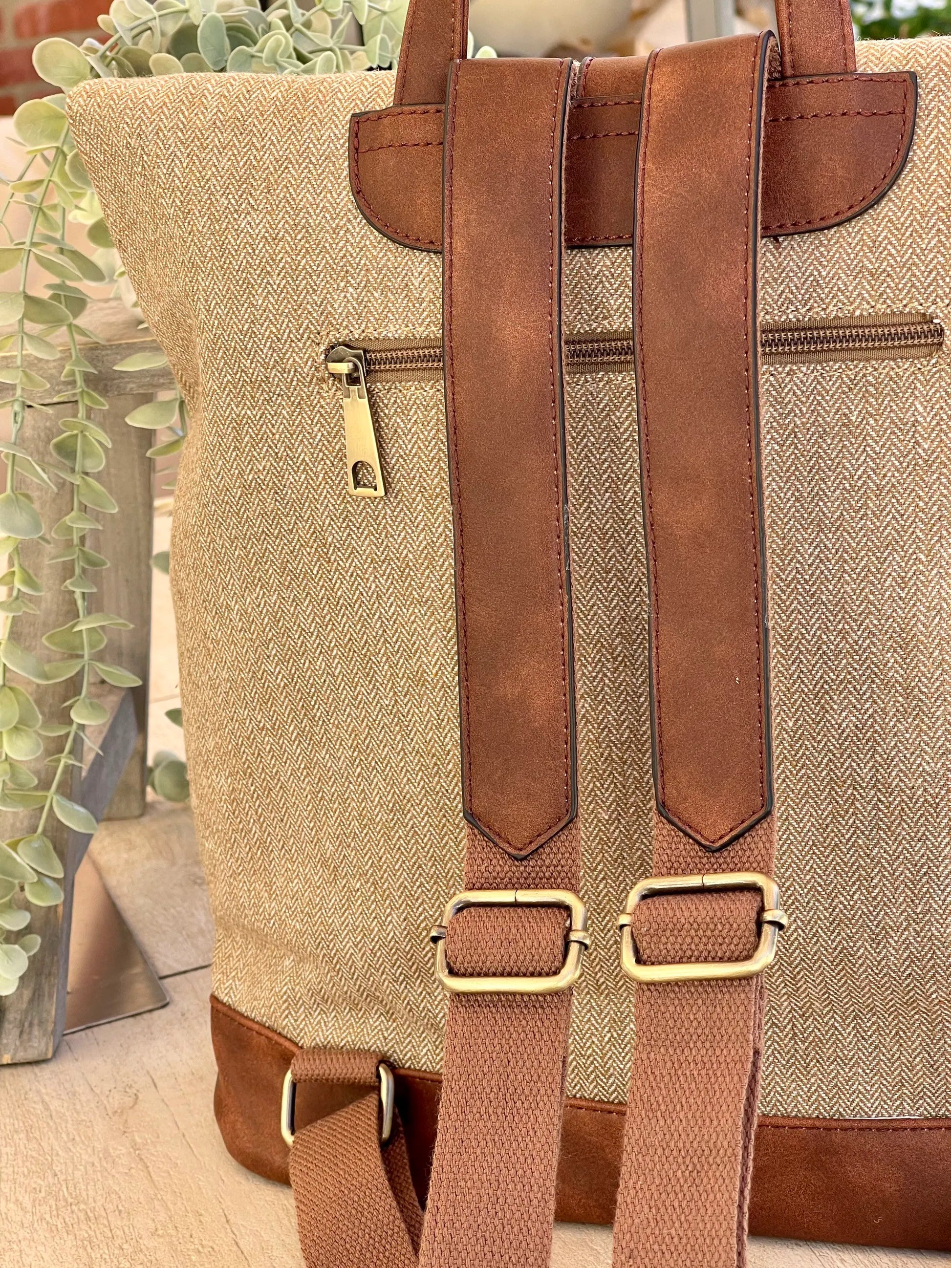A lovely new herringbone canvas rucksack design for everyday use and city adventures. Handmade minimal and versatile, this rucksack is designed to have an adjustable size depending on your needs.