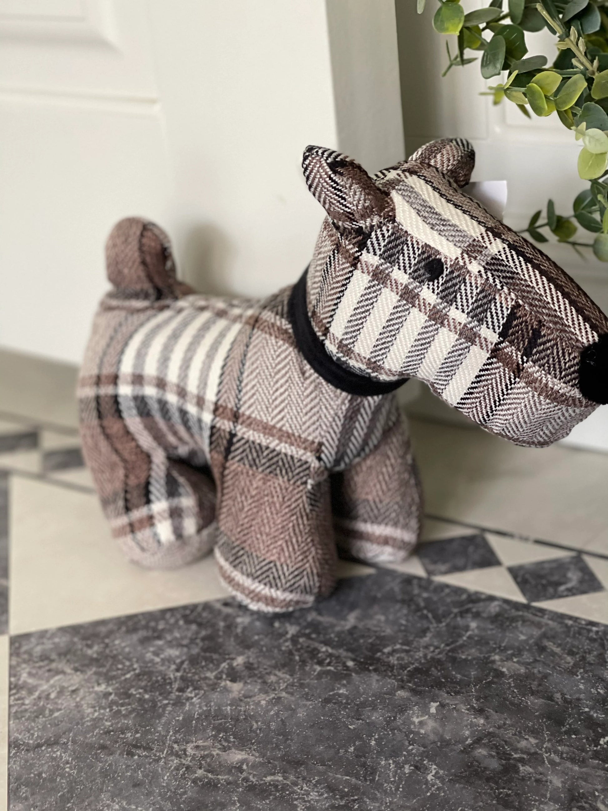 Bentley the Dog Fabric Household Door Stop - Brown Tartan