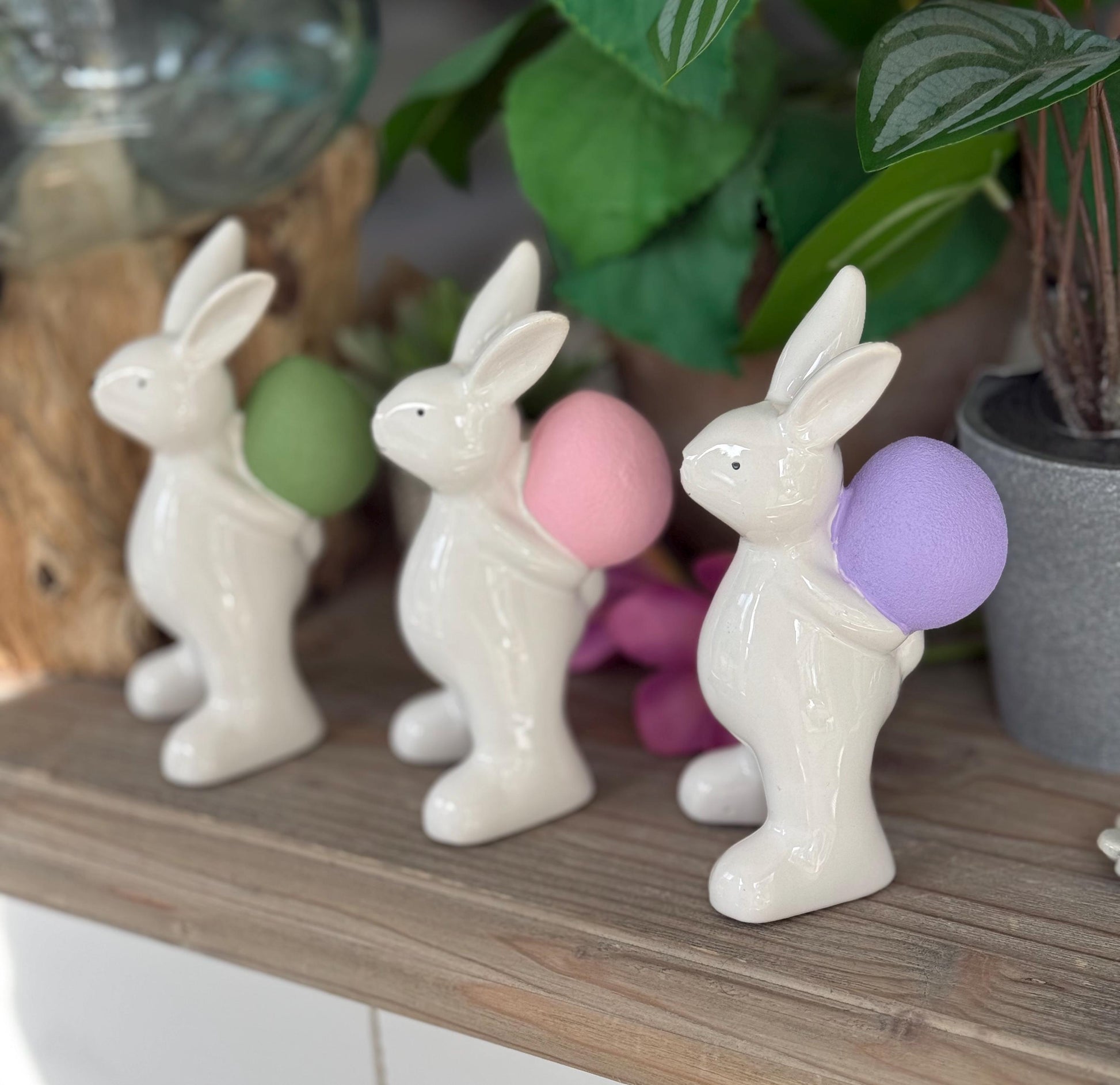Ceramic White Bunny/Rabbit with Painted Egg - Available in 3 colours