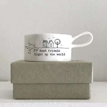 East of India Handled "Good Friends" Porcelain Tea Light Holder