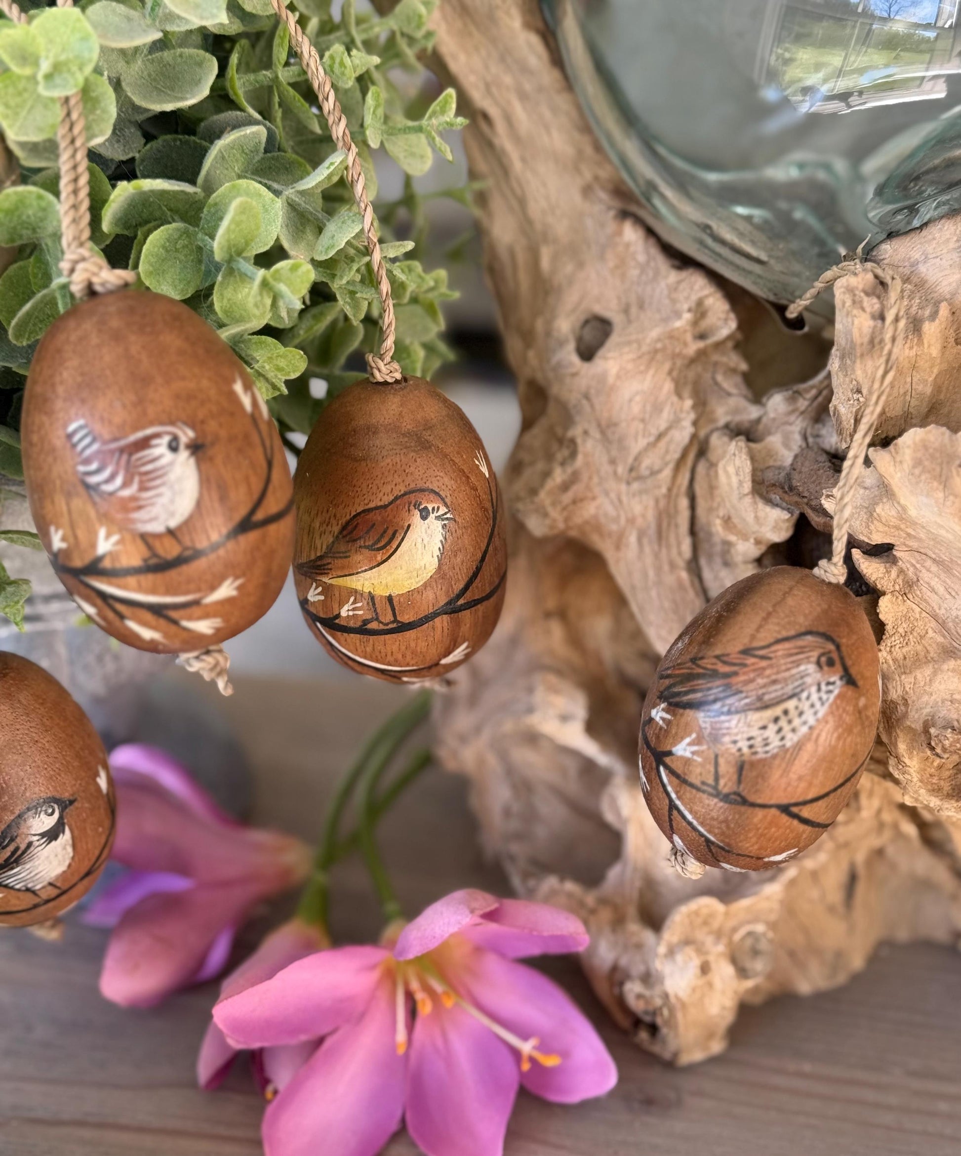 Wooden Painted Wild Bird Hanging Egg - 5 Options Available