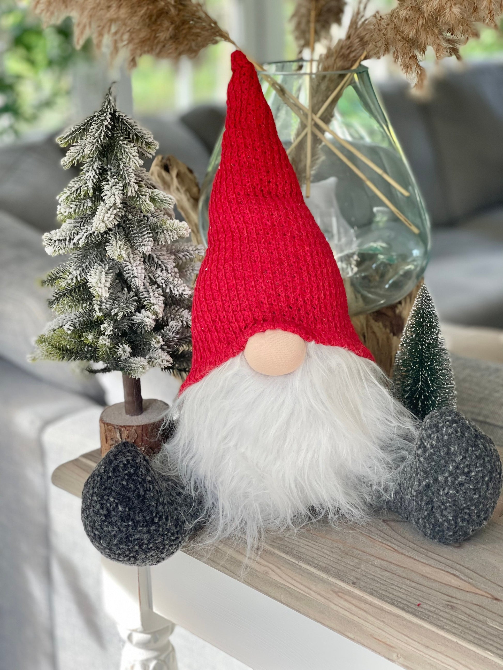 Festive White Gonk with Red Hat. A perfect accessory for your growing collection of Gonks this winter.