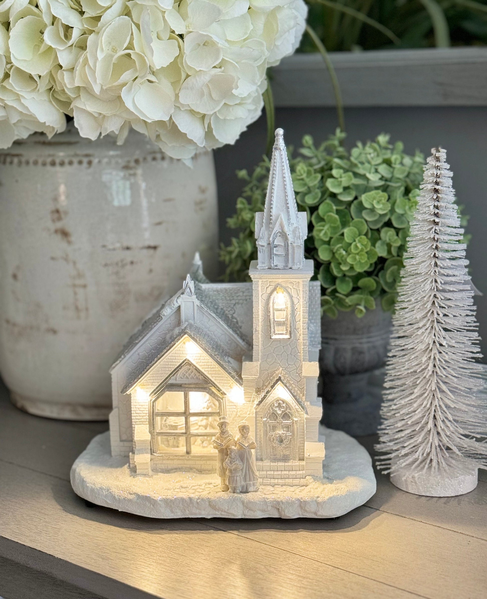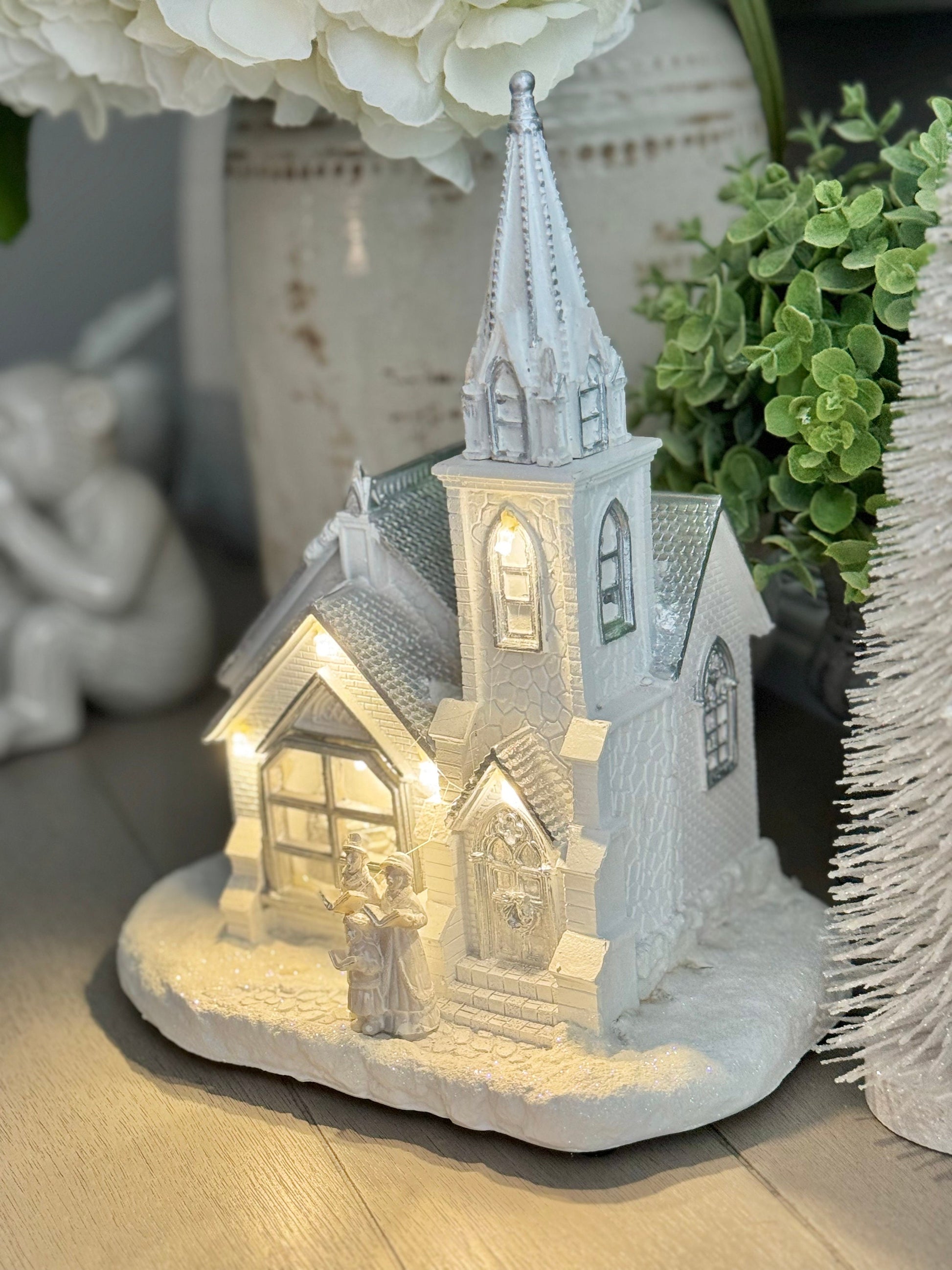 LED Light Up White And Silver Church Decoration