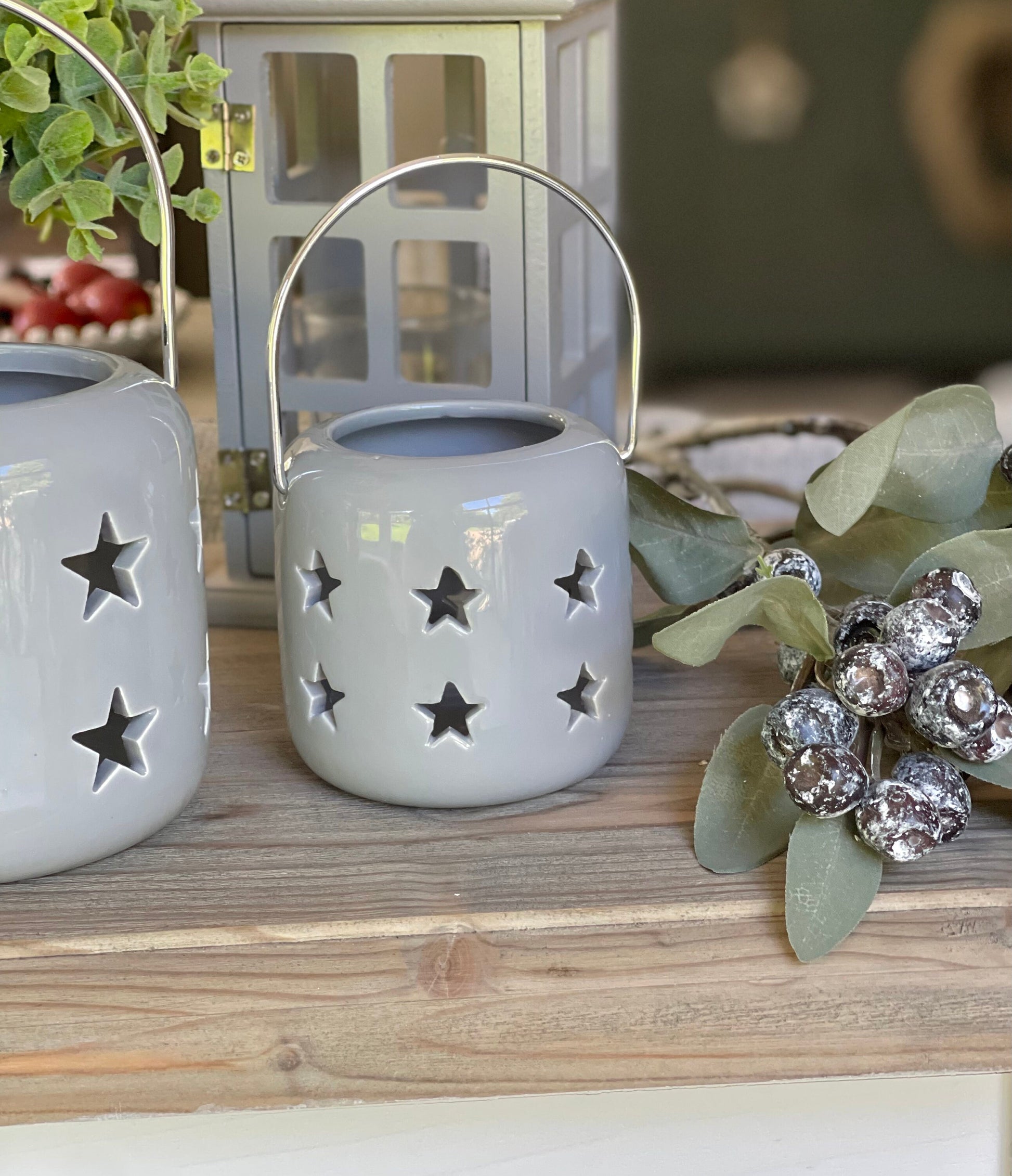 Grey Ceramic Star Cut Lantern - 2 Sizes Available