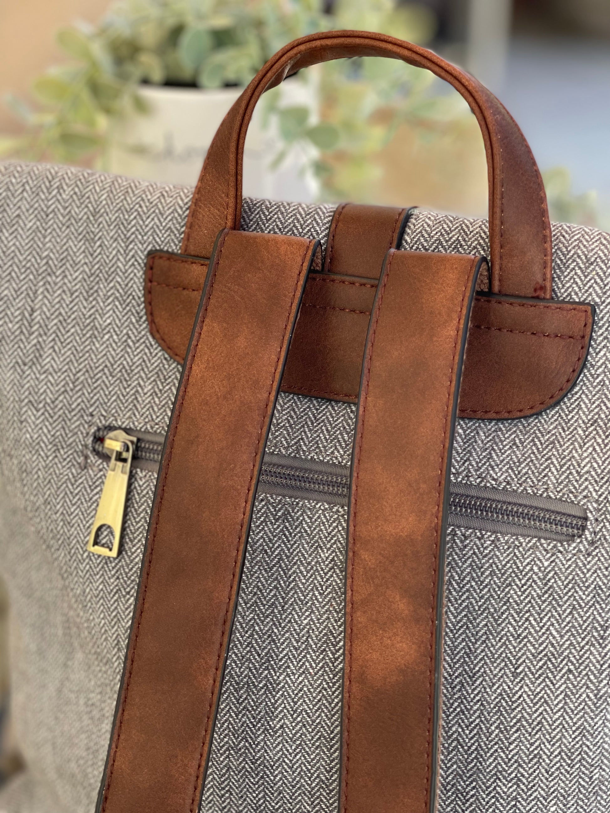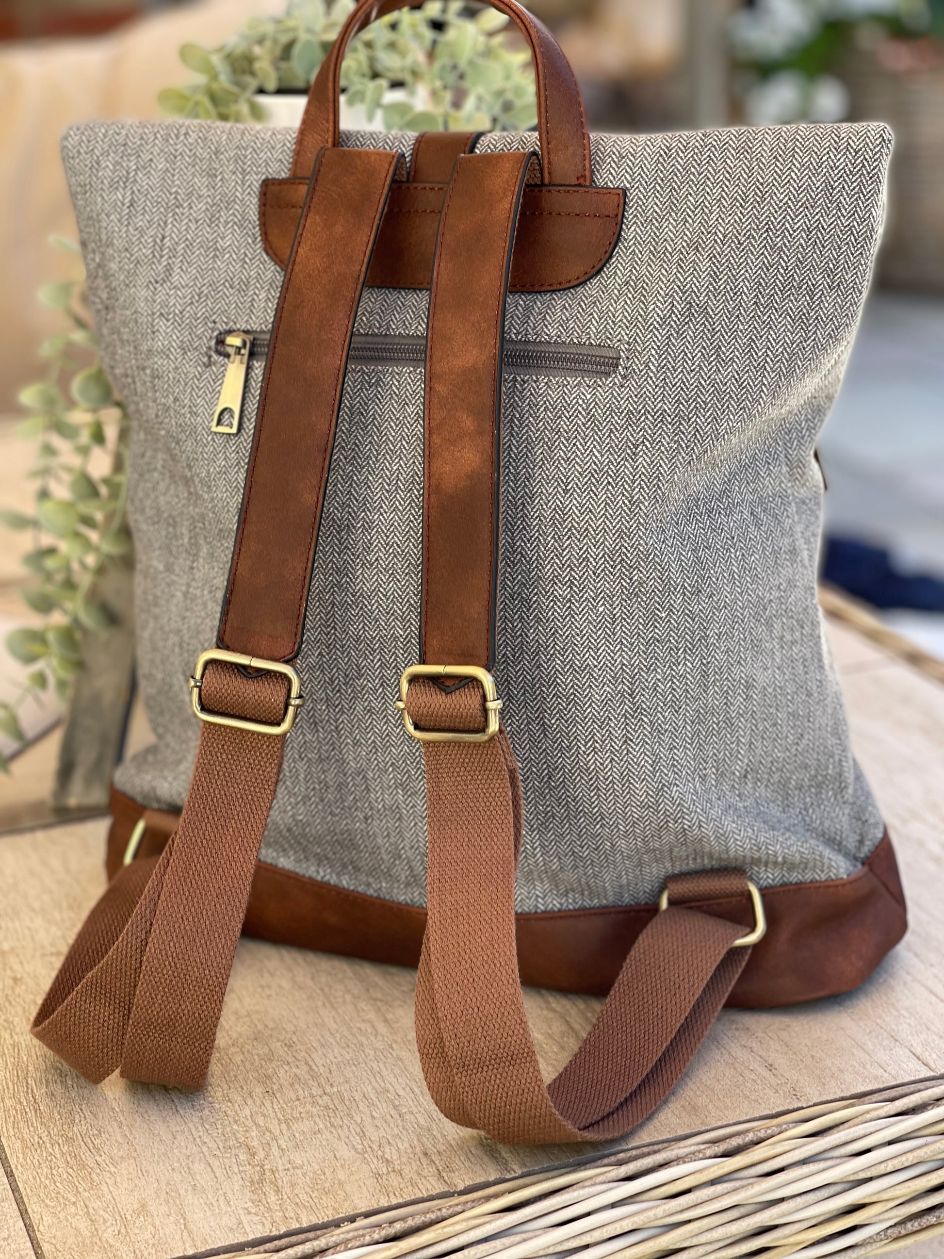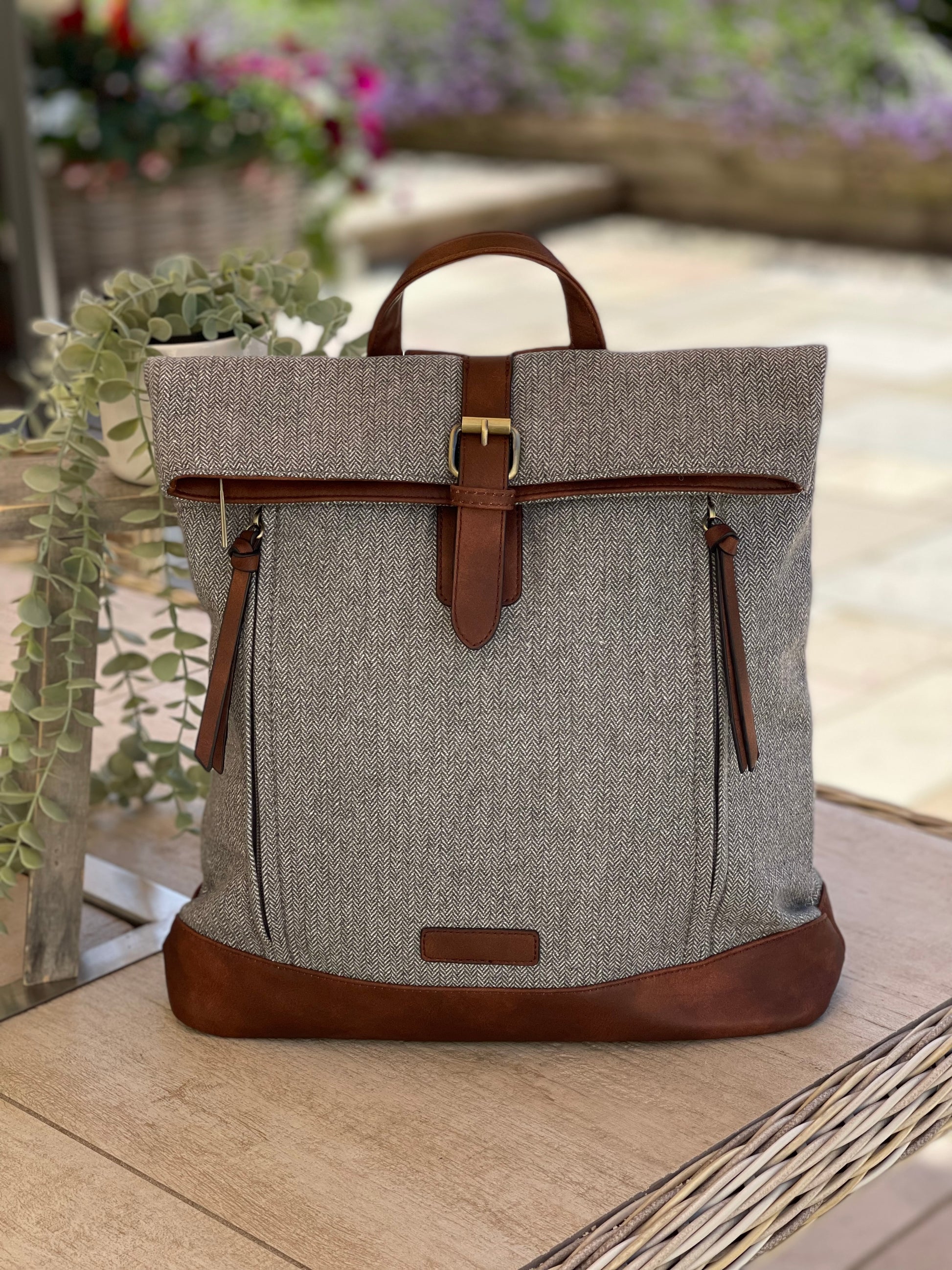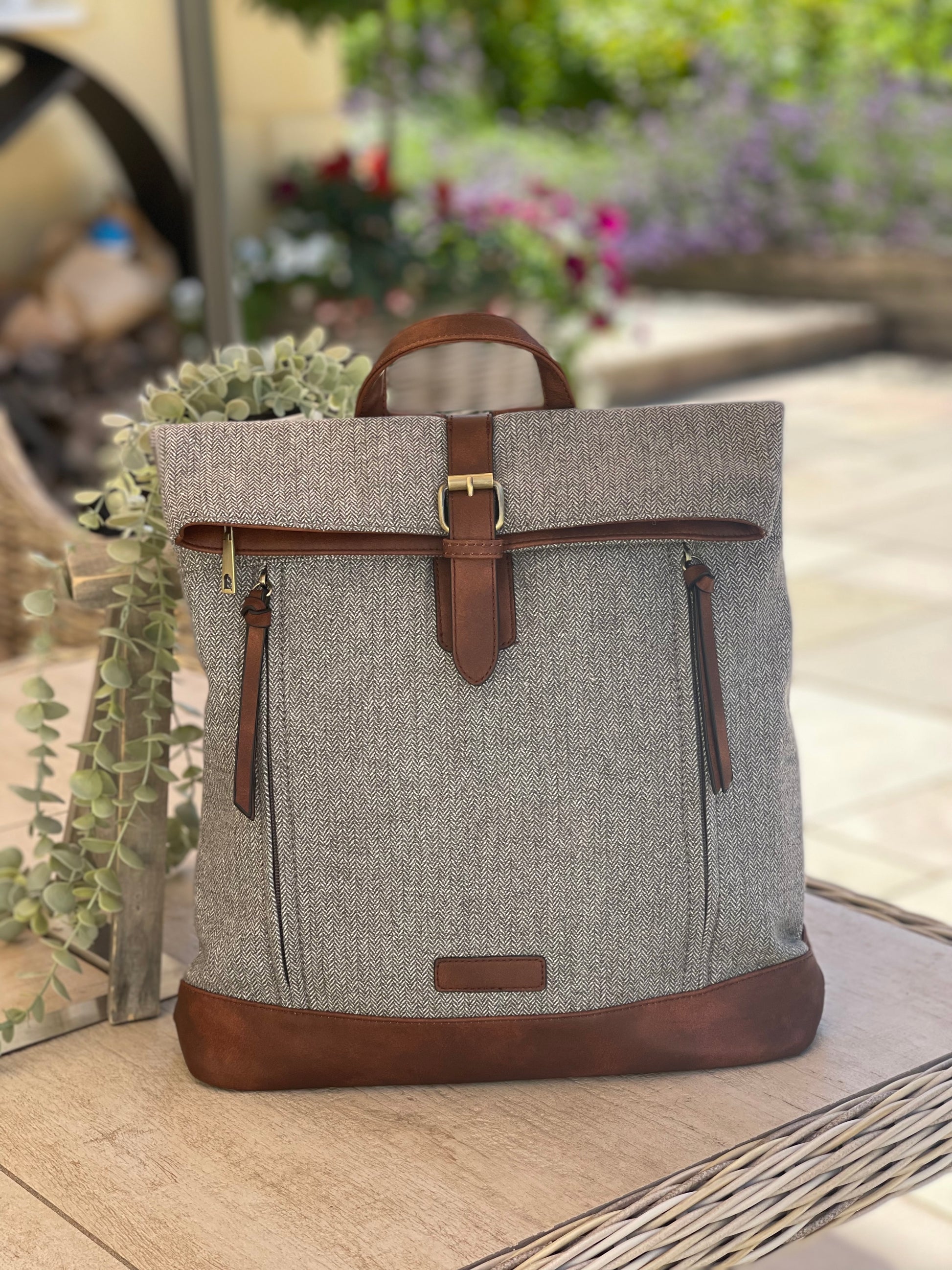 A lovely new herringbone canvas rucksack design for everyday use and city adventures. Handmade minimal and versatile, this rucksack is designed to have an adjustable size depending on your needs.