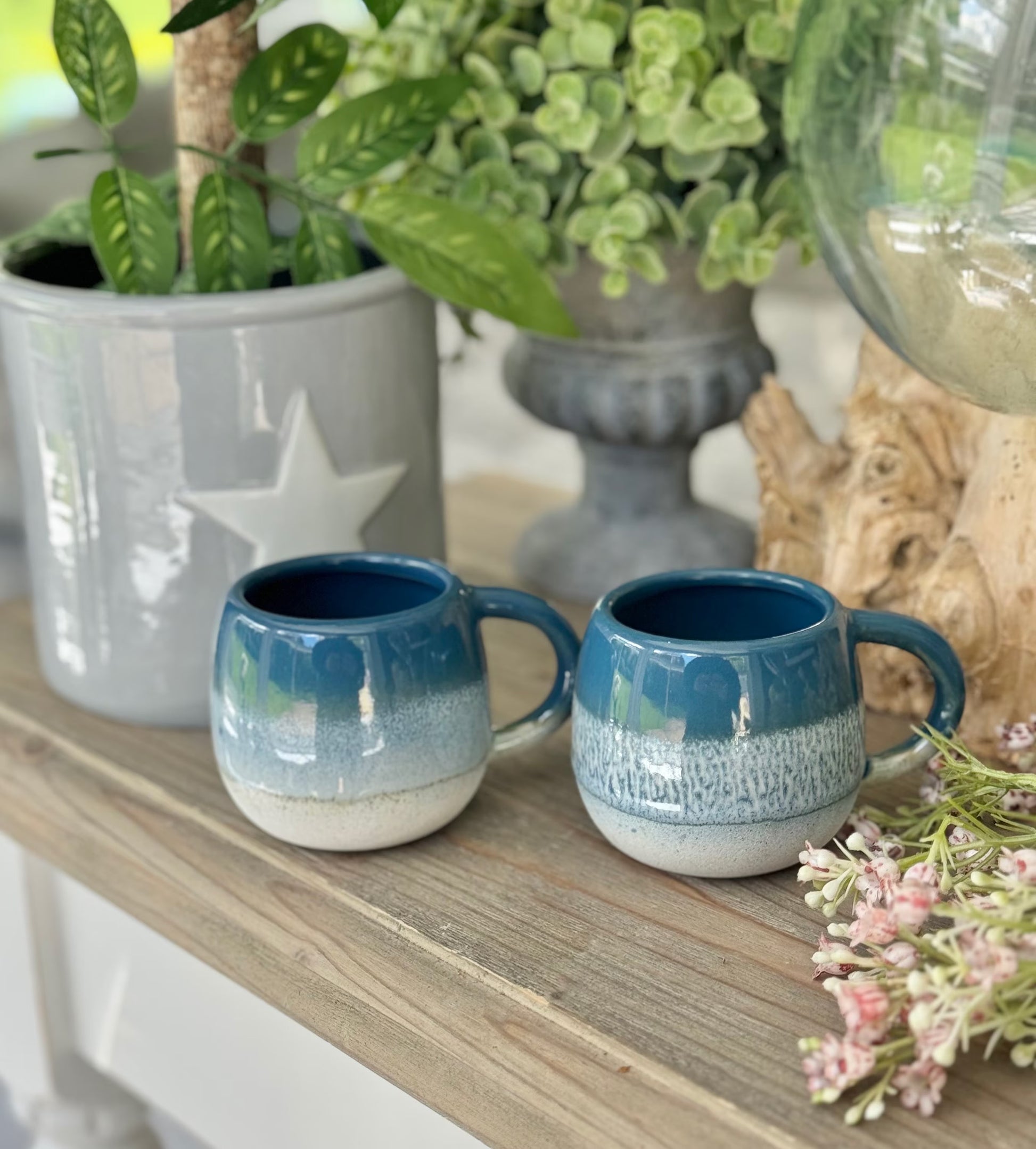 Check out our new set of 2 mugs. These mugs are strongly crafted from high-quality stoneware and features an ombre design created using a reactive glaze technique.