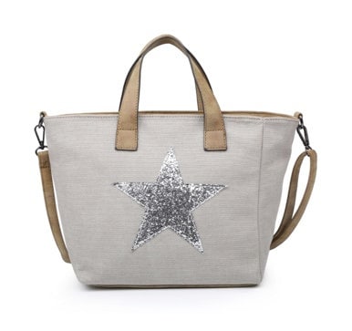 Durable canvas handbag with a glitter star with a detachable shoulder straps