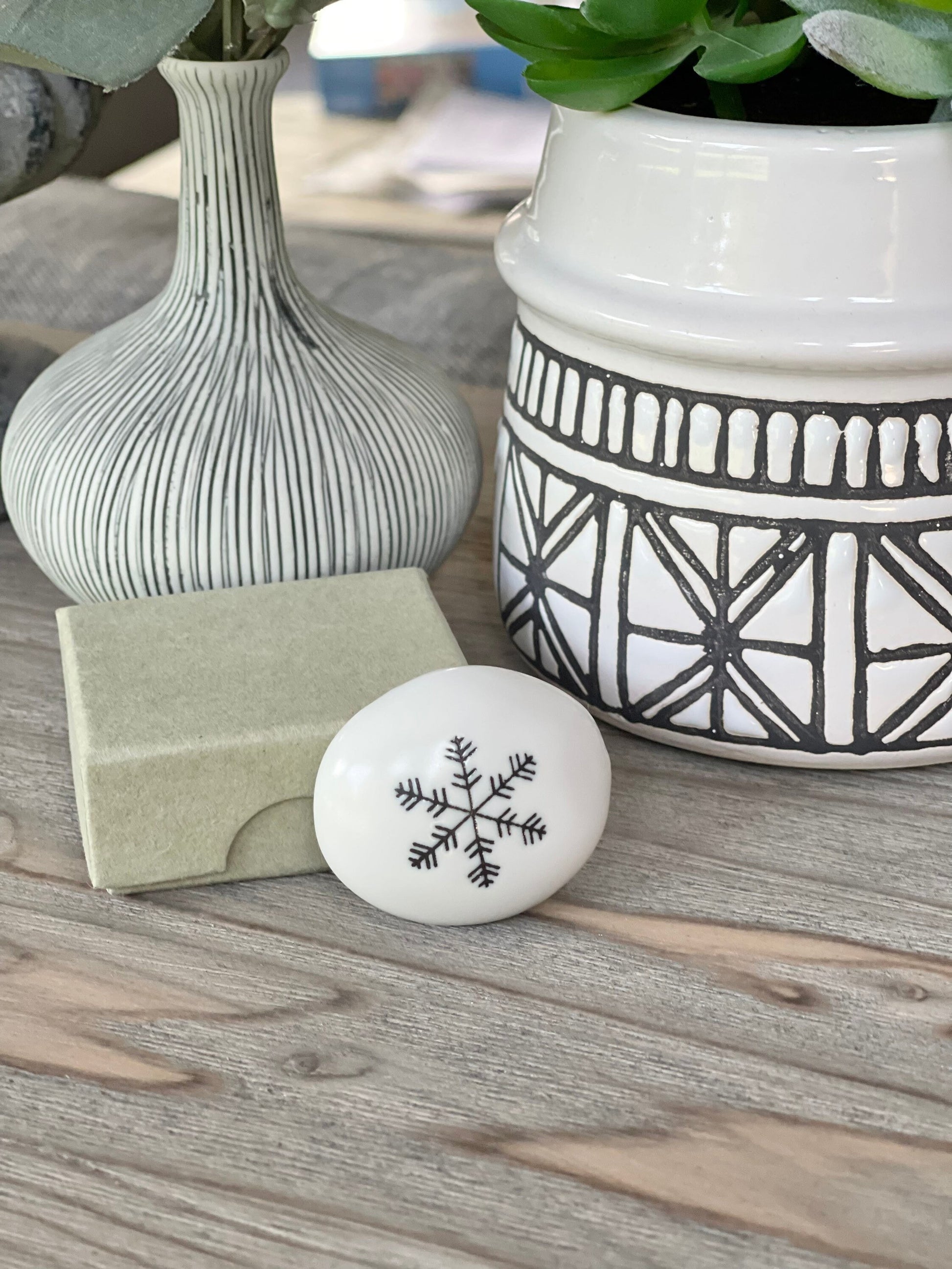 Solid White Porcelain Pebble engraved with - Thanks For Being Amazing. There is snowflake on the reverse
