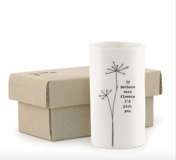 A simple line illustration of flowers indented into the surface, sweet words read "If mothers were flowers I'd pick you’.