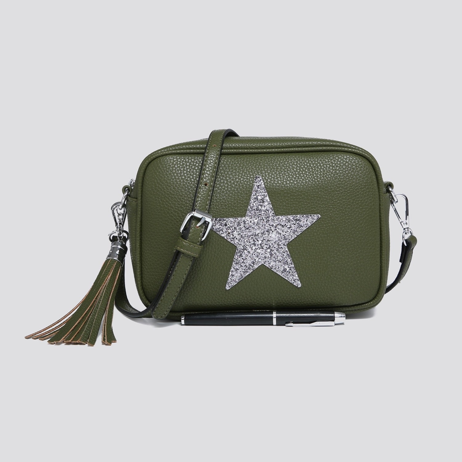 Colour: Khaki Green with Silver Star and Chrome Fixings