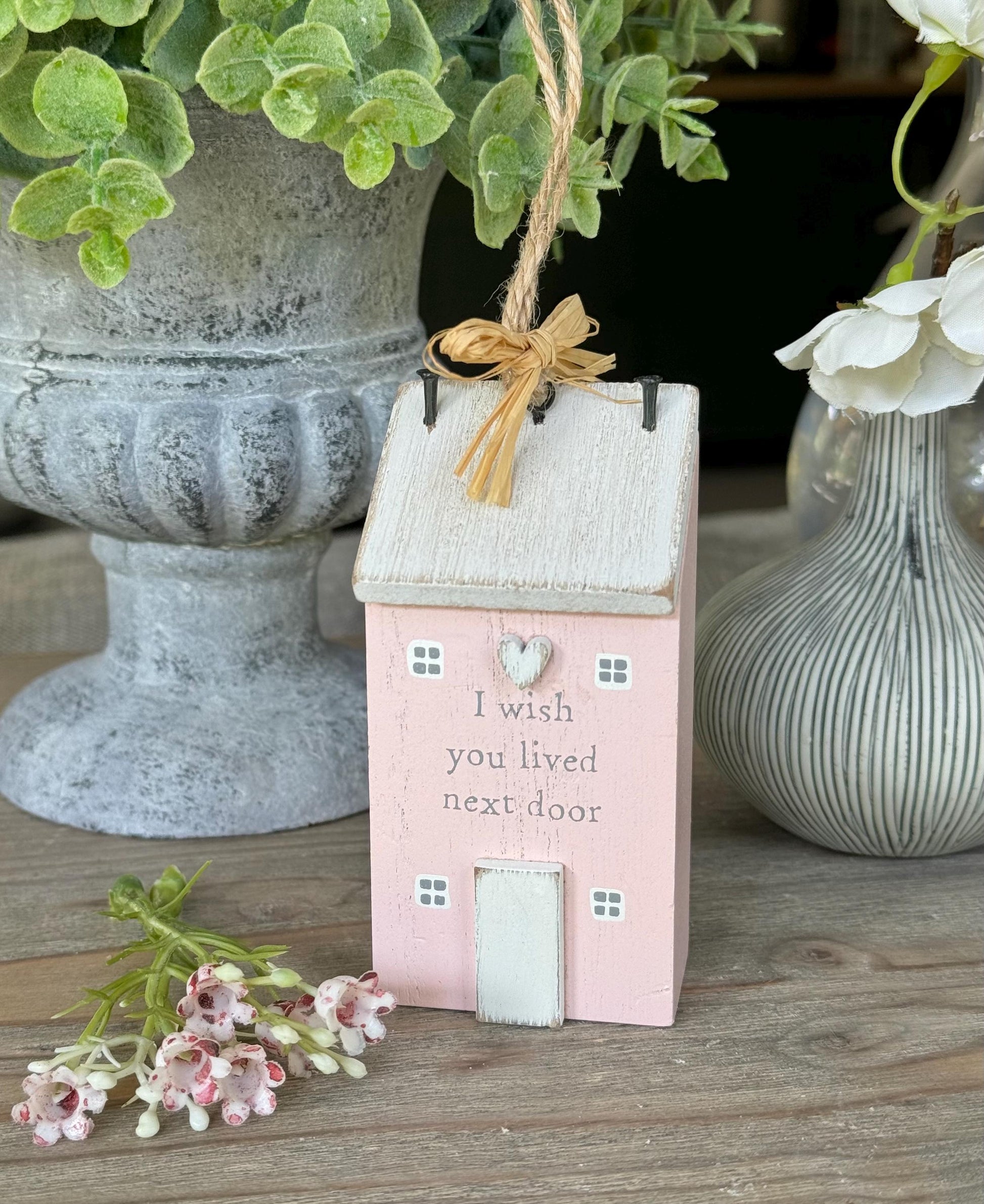 Rustic Wooden House Hanger "I Wish You Lived Next Door"