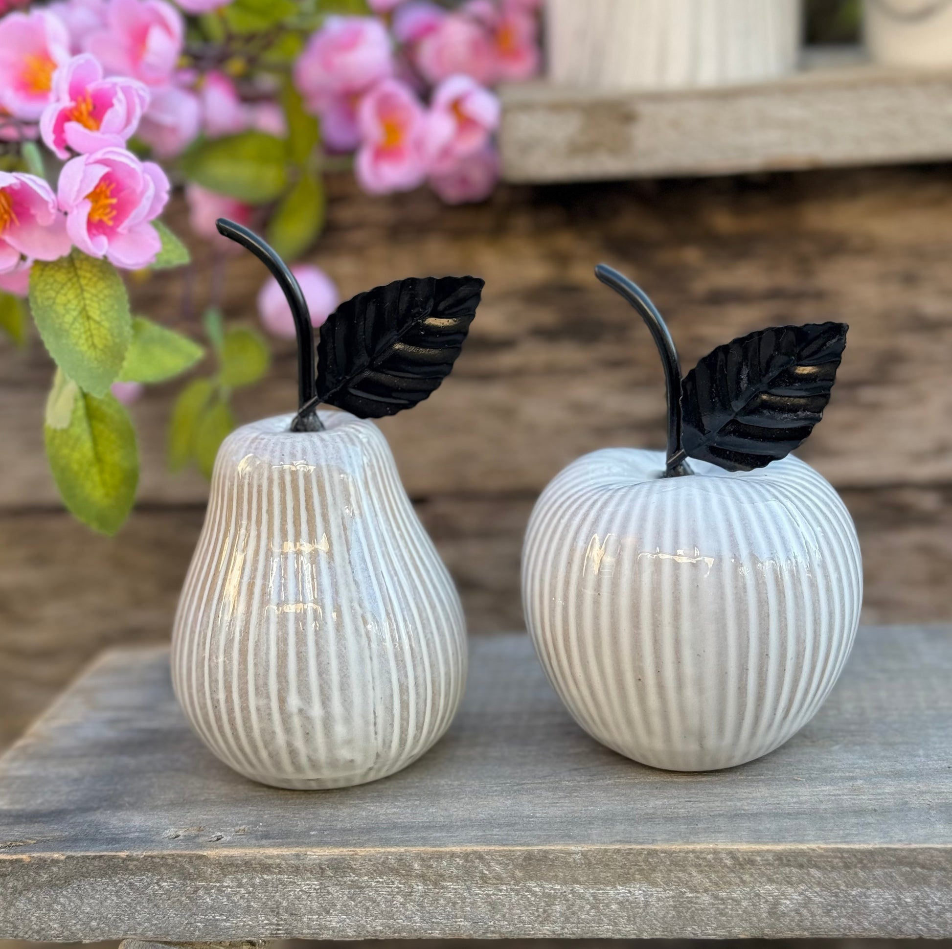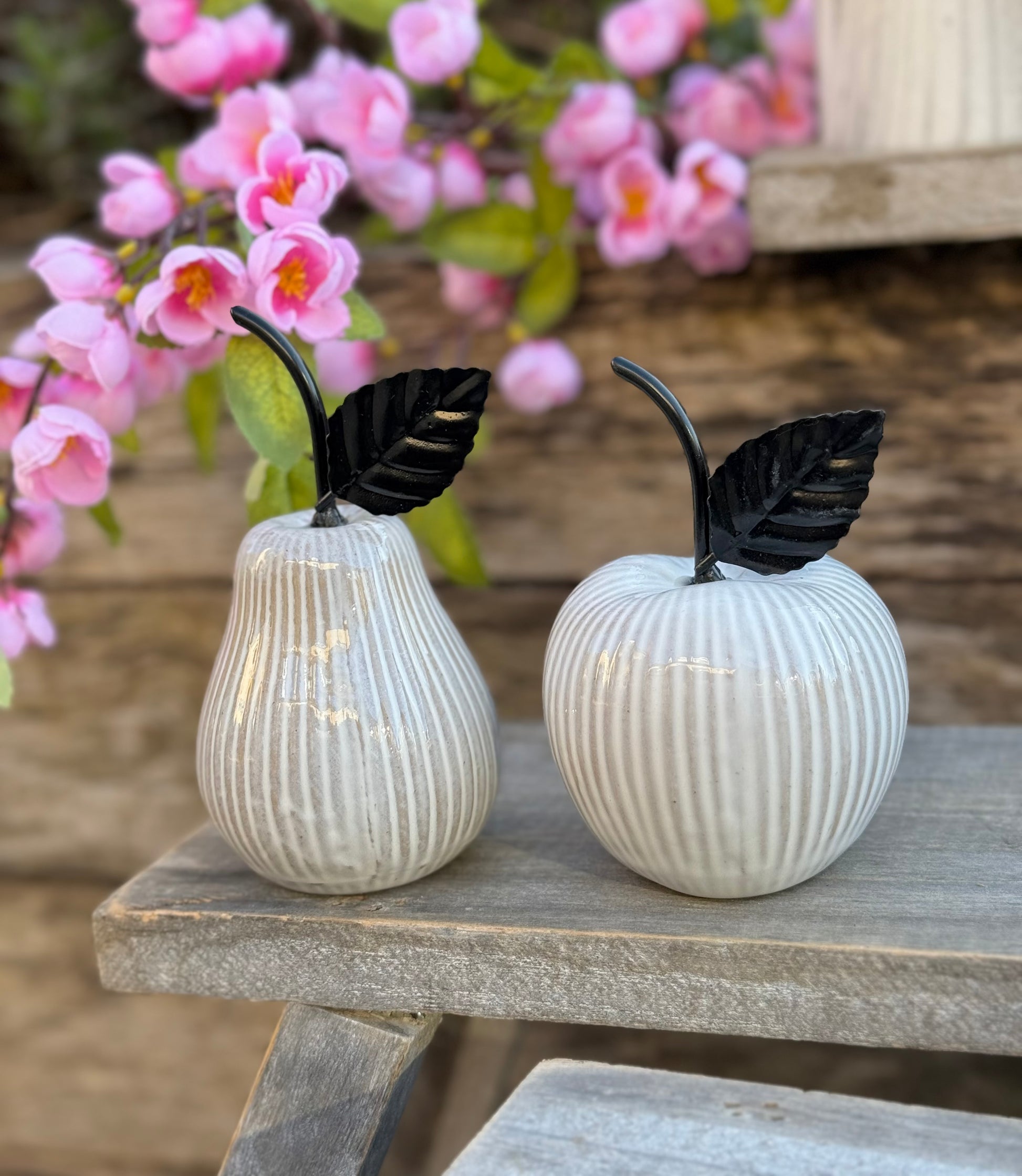 Ceramic glazed Pear/ Apple shaped decoration featuring a lustrous sheen and delicate embellishments for a truly sophisticated touch. Each Sold Individually