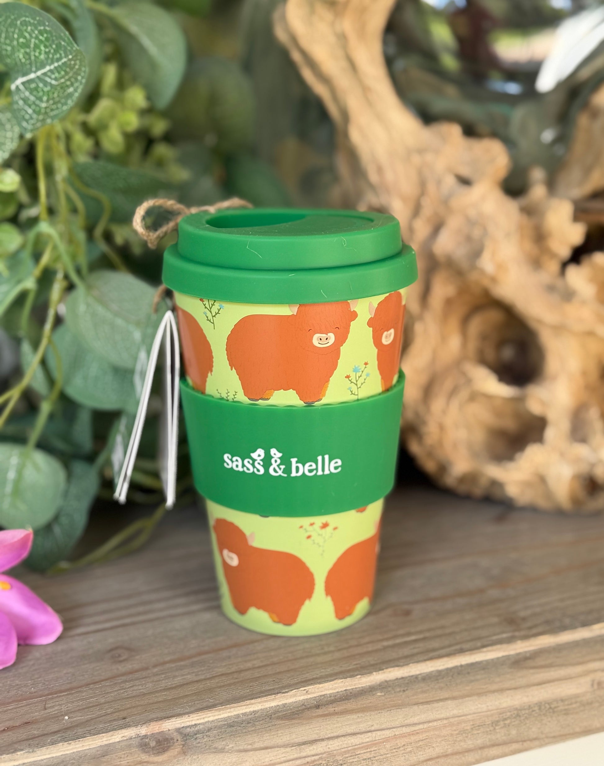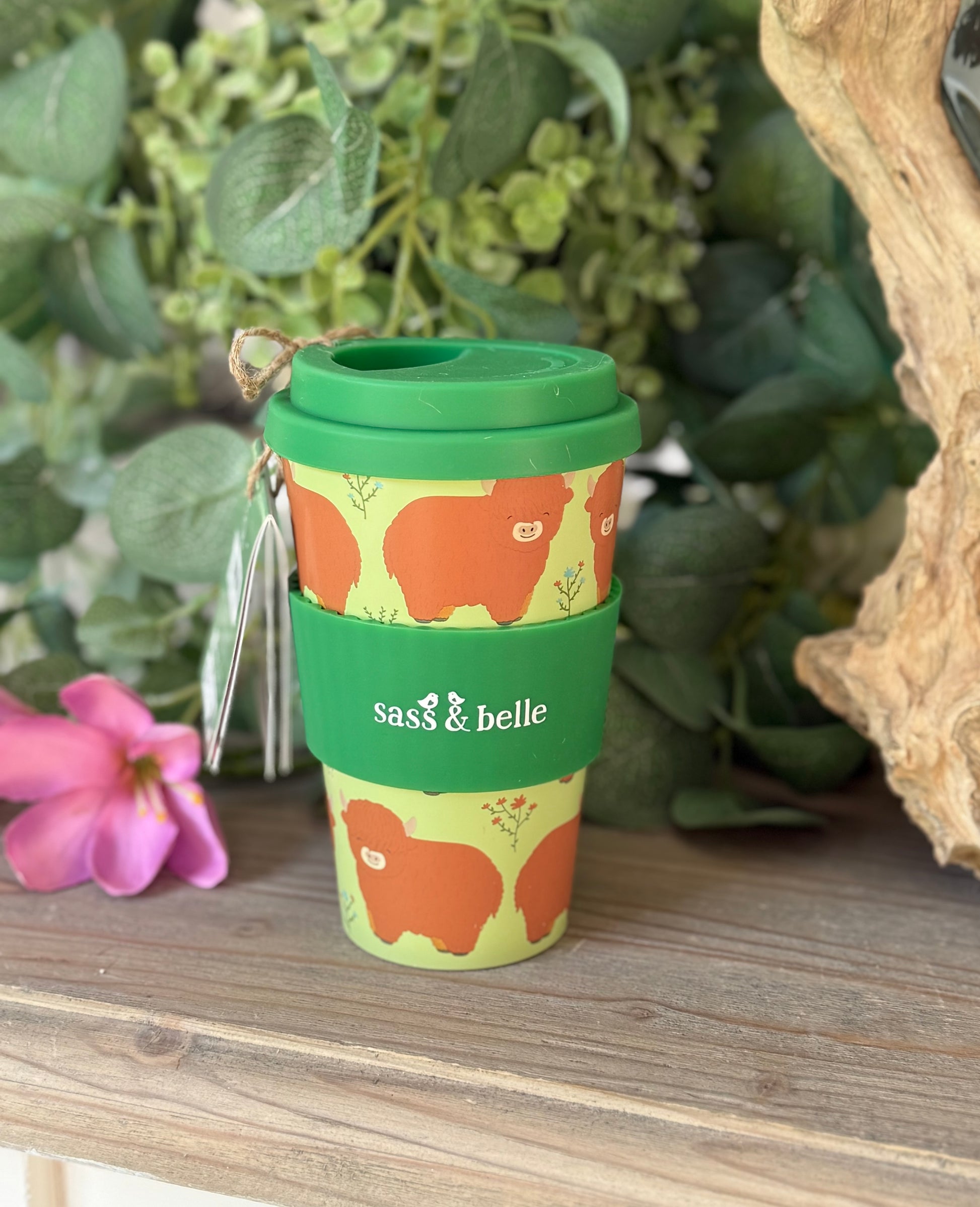 Take your love for Highland Cows on the go with this Travel Coffee Cup. Features a playful Cow design, this eco-friendly cup keeps your drinks hot and your style on point while you're out and about. Silicone Lid, cup is made from recycled rPET plastic (recycled polyethylene terephthalate)