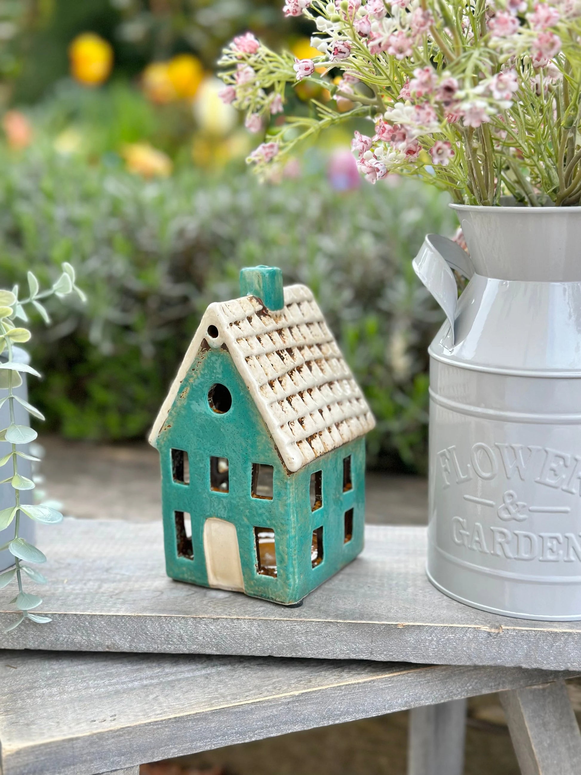 Turquoise Ceramic Townhouse/Cottage Candle Holder