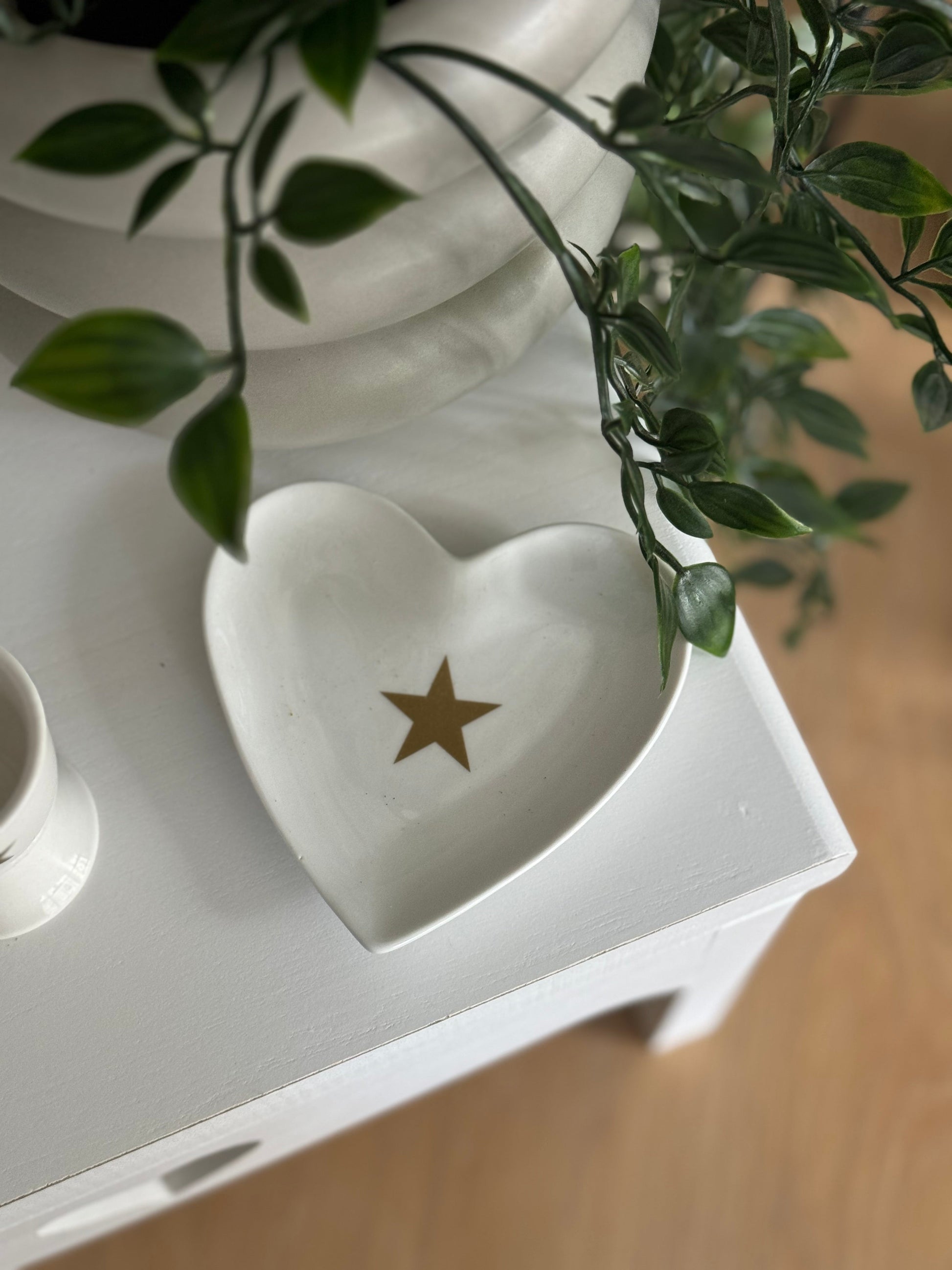 Lovely White Porcelain Heart Shaped Dish with Gold Star