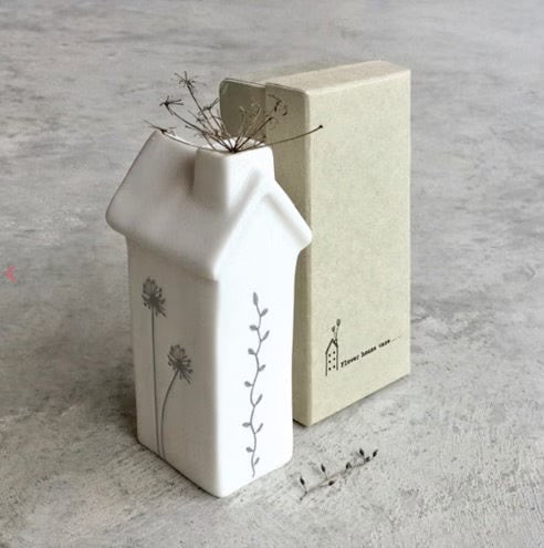 This elegant tall house-shaped porcelain vase by East of India is perfect for displaying a little flower, or simply on its own as a decorative piece that is sure to brighten up any home.