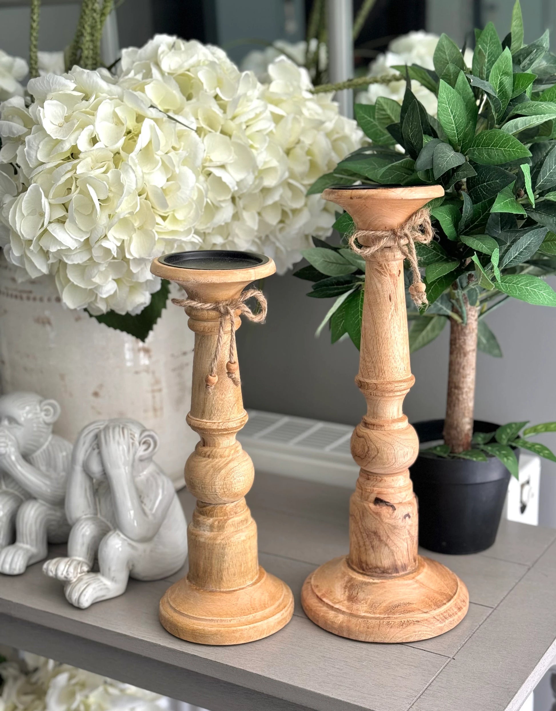 Mango Wood Candlestick - Available in 2 sizes
