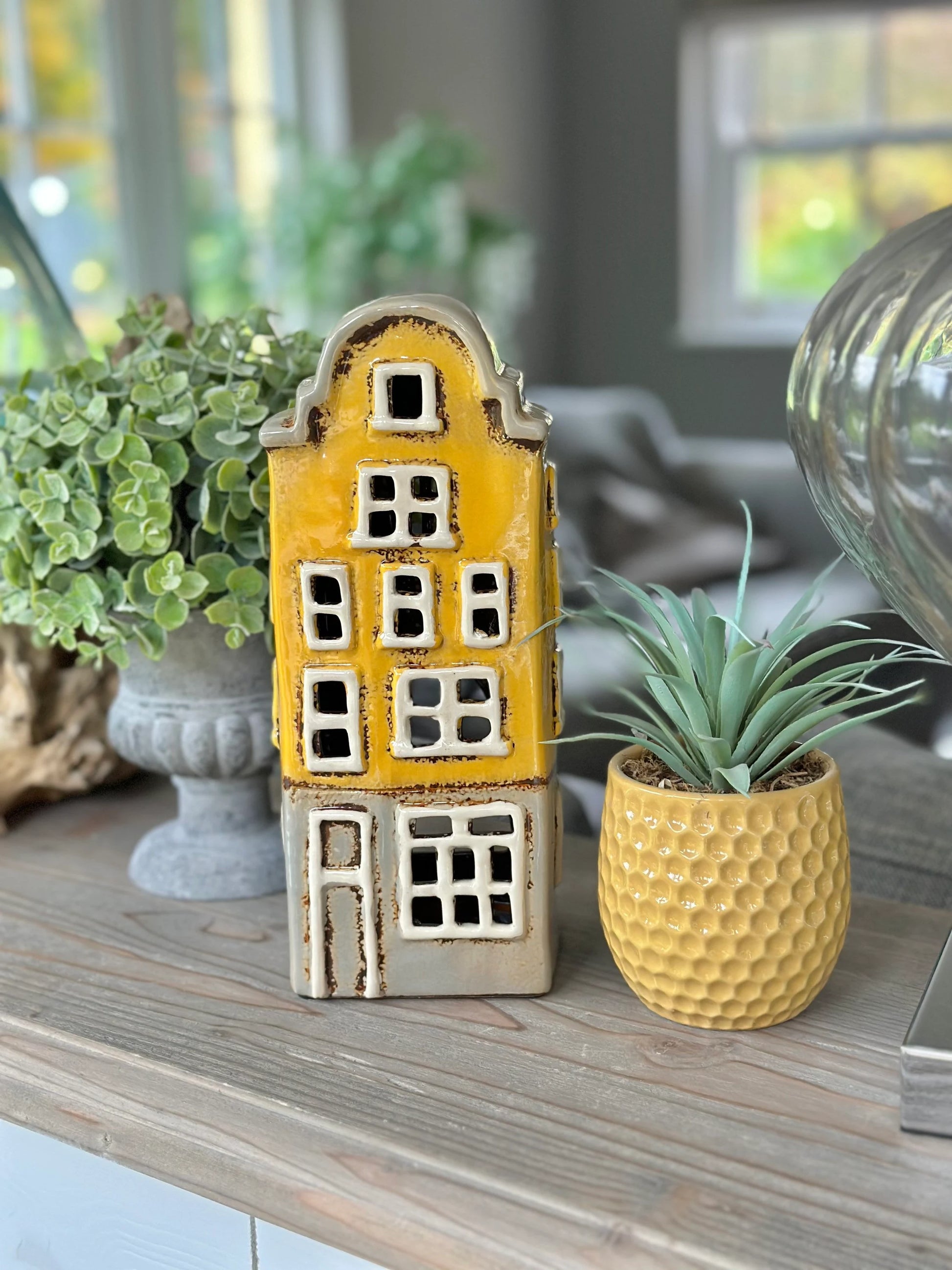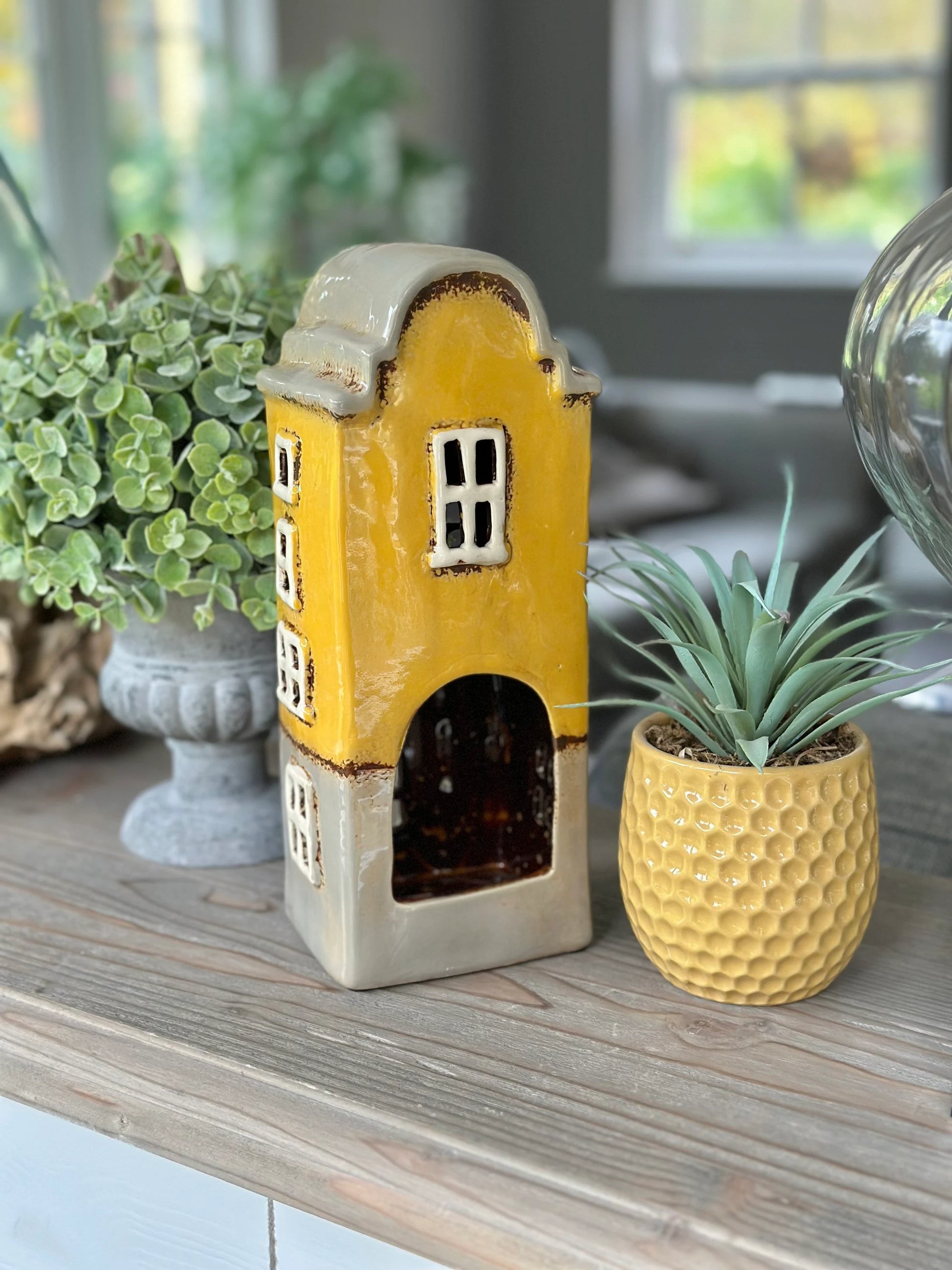 Mustard Yellow Ceramic House /Cottage Candle Holder